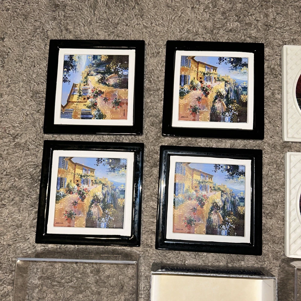 YOU GET 4 OF THE FLOWER COASTERS AND YOU GET 4 OF THE OTHER KIND! A GREAT PRICE FOR THIS AWESOME SET OF COASTERS! NOTICE THE SLIGHT DISCOLORING SHOWN IN THE PHOTOS, NOT SURE IF ITS BECAUSE THEY WERE USED OR MANUFACTURING ERROR, BUT THEY STILL LOOK AMAZING! Please review all of the pictures shown above, as you will get the EXACT item/items shown! Please feel free to contact me with any questions or OFFERS!