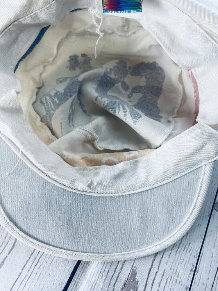 RARE The Police Synchronicity 1983 Tour Band Hat Sting Collectors Music Vintage. Incredibly RARE Police Synchronicity Tour Hat. BRAND: RockHats By Rippers, Honolulu Hawaii COLOR: Multicolor CONDITION: Vintage. GUC- Good Used Condition. Has a slight yellowing hue due to its age. Contains several stains we’ve tried to show through our photos. Many Yellow Stains. AS IS. * SIZE: Adult One Large * View pictures closely for best details on condition. See below for more information about item conditions. NOTES ON ITEM CONDITION Pictures are considered a major part of the item description. The best details on the condition of the item come from looking closely at all pictures, enlarging them and zooming in to see as much detail as possible. The following condition designations provide a basic idea of the item's condition, but once again, please look closely at every picture. NWT - New With Tags * The item is brand new and unworn, and retail tags are still attached. NWOT - New Without Tags * The item is brand new and unworn, however it does not have retail tags attached. EUC - Excellent Used Condition * The item has no holes. * It has minimal wear. * Either has no stains or only tiny spots. * Sometimes this could also be described as near new condition. VGUC - Very Good Used Condition * The item has some wear, but it still looks very nice. Item may have some marks and scuffs, but no major stains or imperfections. * Any holes or stains are small. GUC - Good Used Condition * The item is overall in good condition, but it has obvious signs of wear. * Signs of wear could include any of the following: occasional stains, faded spots, dark spots, small holes, pilling, pulled threads, lightly frayed edges, etc. * For hats this could also include sweat marks. Distressed Condition * The item is very worn and has major signs of use, including any of the following: extremely frayed edges, medium to large holes (or lots of small holes), numerous stains, sweat marks, dirty areas,etc.