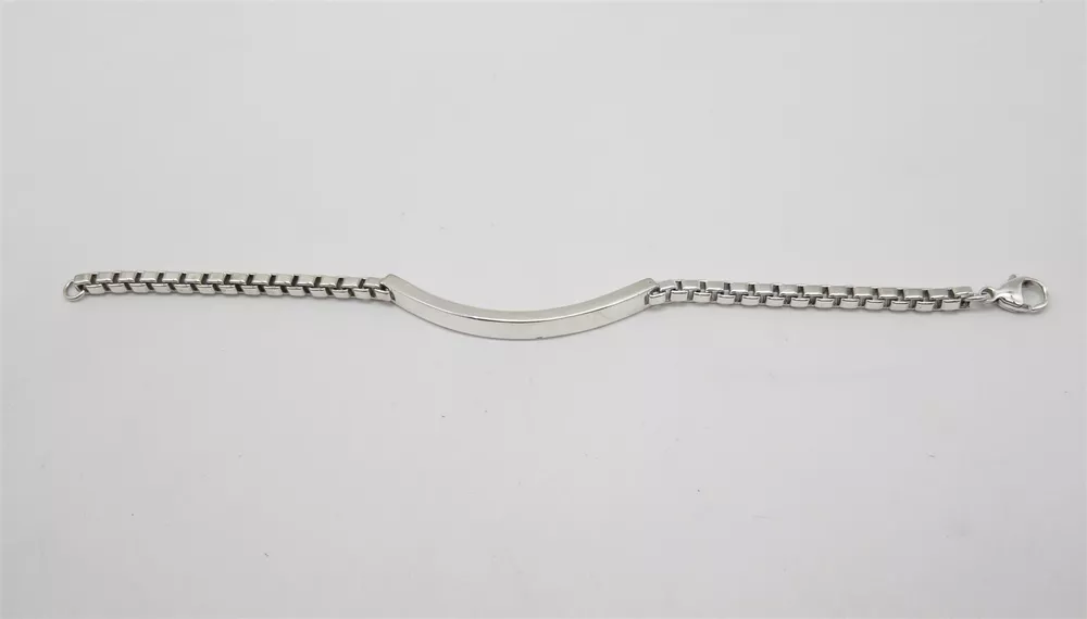 Description: Tiffany & Co ID BRACELET or BAR BRACELET...you could write your name on this or keep it as is. Cool piece and rare find. NICE looking bracelet and 7.5 inches long. WOW!!! Stone: NONE Metal: Sterling Silver Length: 7.5 in Gram Weight: 19.5 Powered by SixBit's eCommerce Solution
