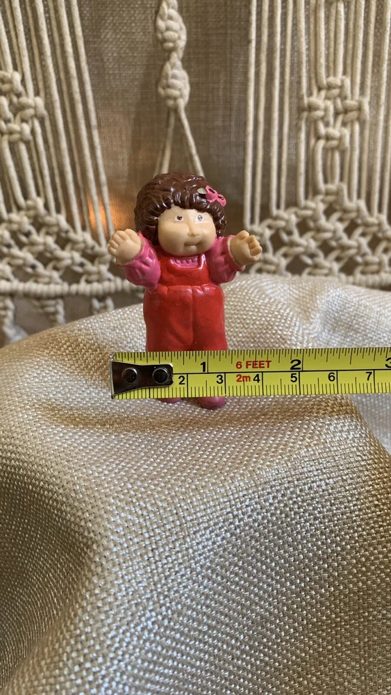 This rare vintage mini cabbage patch figure doll is a perfect gift idea for all occasions. Made of plastic and PVC materials, this approximate height of 3-inch girl doll has curly brown hair and brown eyes. The doll's complexion is light, and she has a multiracial ethnicity. I'm not a collector or expert so please see all photos for condition and let me know if you have any questions or need any more photographs. Due to the reason of light and the display, you can see the picture may have a slight color difference, this is inevitable, please understand. Please review images to make your judgment on cosmetic condition which I believe is a matter of personal opinion. You will get what you see. The photos will overrule the listing title or descriptions if there is any discrepancy.