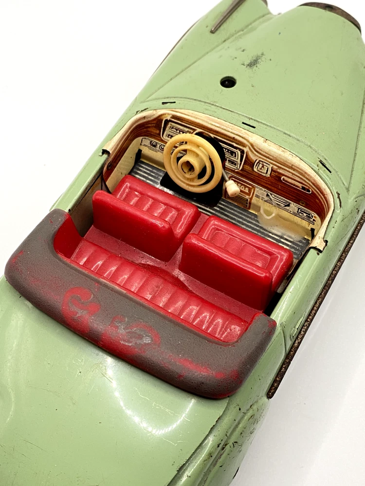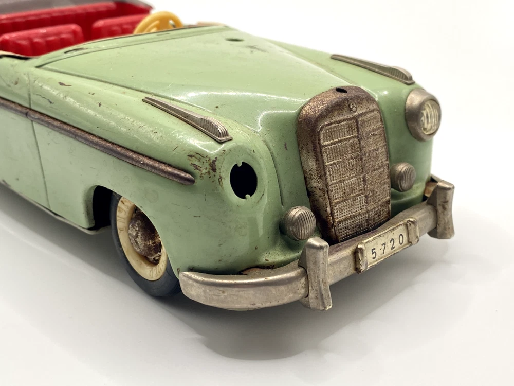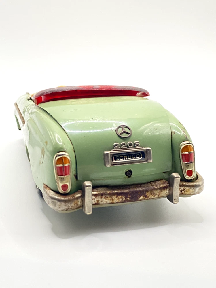 Up for your consideration is a RARE Vintage Schuco Elektro-Hydro-Car 5720 Mercedes Benz 220S. Car is in overall good shape, it does show some rust spots, and worn areas from it being played with. One headlight and the windshield is missing. Car has not been tested. Perfect candidate for a restoration. Please see all photos for more details. Car is sold as is, what you see is what you will receive.