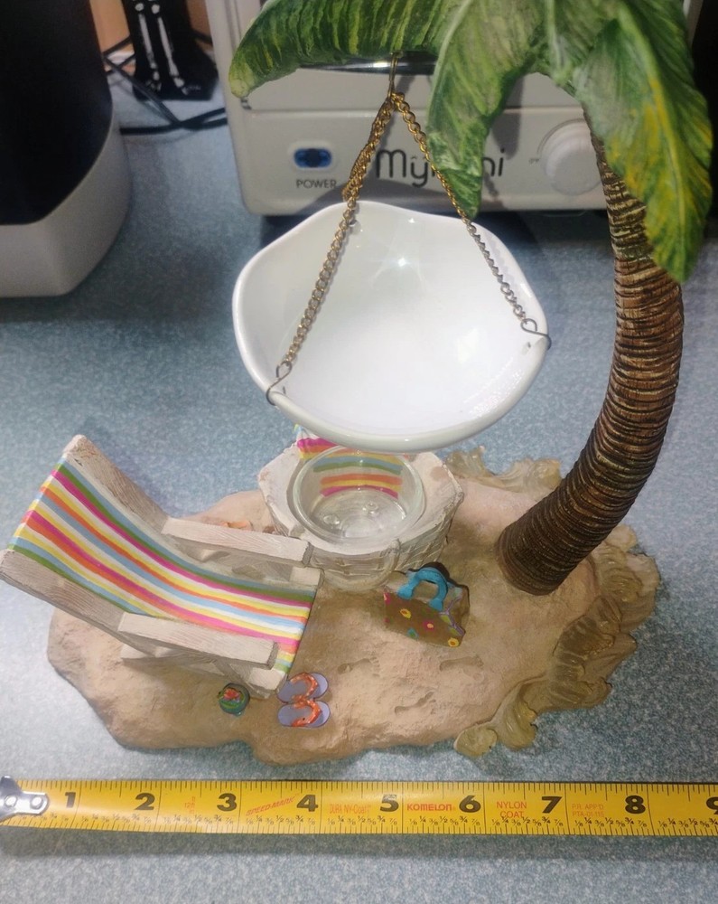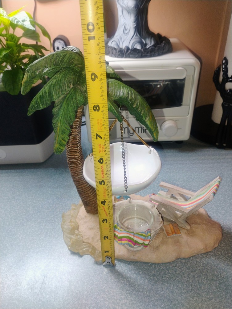 Size:LargeMounting:Free StandingSuitable For:Wickless Tart/Bar, Tart WarmerMaterial:ResinType:Warmer/BurnerTheme:Christmas, Seasonal, Beach, SantaBrand:Yankee CandleColor:MulticolorFinish:PaintedCountry/Region of Manufacture:ChinaFeatures:Decorative, HangingPersonalize:NoShape:Palm TreeCustomized:NoStyle:Beach
