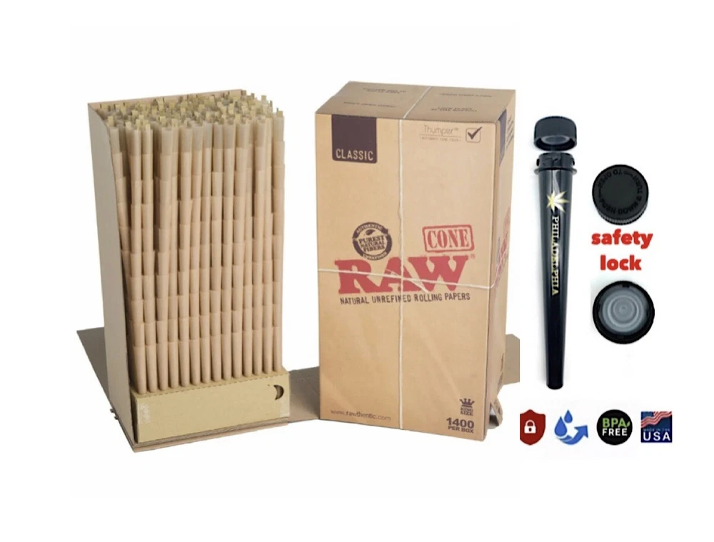 RAW Classic King Size Authentic Pre-Rolled Cones with Filter 100 Pack) AUTHORIZED RAW DISTRIBUTOR! **These pre-rolled cones are re-packaged in plain brown boxes, it does not come in it's original box**