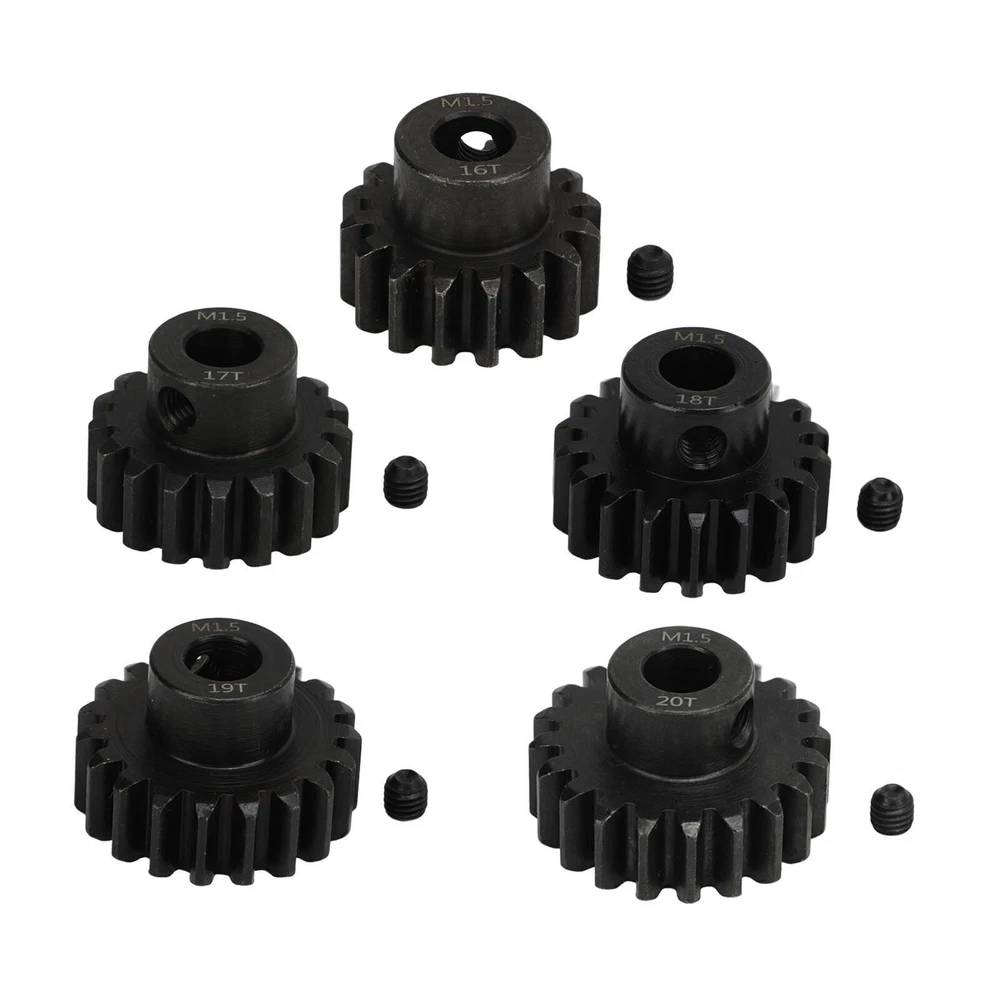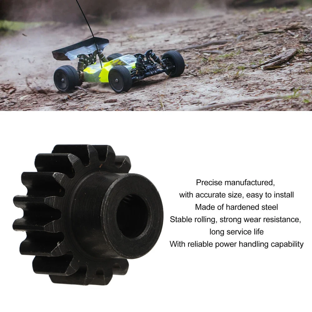 Feature: 1. WIDE COMPATIBILITY: This RC car gear is compatible with most 1/5 scale remote control cars, such as for TRAXXAS 1/5 6S 8S remote control cars. 2. PRECISE SIZE: With an 8mm inner hole, this RC motor gear is precisely sized for easy installation, making it a practical addition to your RC car kit. 3. HARDENED STEEL: Our RC motor gear is made of excellent hardened steel, providing stable rolling, with excellent wear resistance and long lifespan. 4. RELIABLE PERFORMANCE: The RC pinion gear delivers a reliable power transmission capability, ensuring optimal performance. 5. RC CAR PART: The speed of RC car is dependent on the gear ratio, you can choose the right gear for your desired speed. Specification: Item Type: RC Car Gear Material: Steel Color: Black Module: M1.5 Inner Hole Diameter: Approx. 8mm/0.3in Applicable Model: 1/5 model car (such as for TRAXXAS 1/5 6S, 8S remote control car) Package List: 1 x RC Car Gear 1 x Set Screw