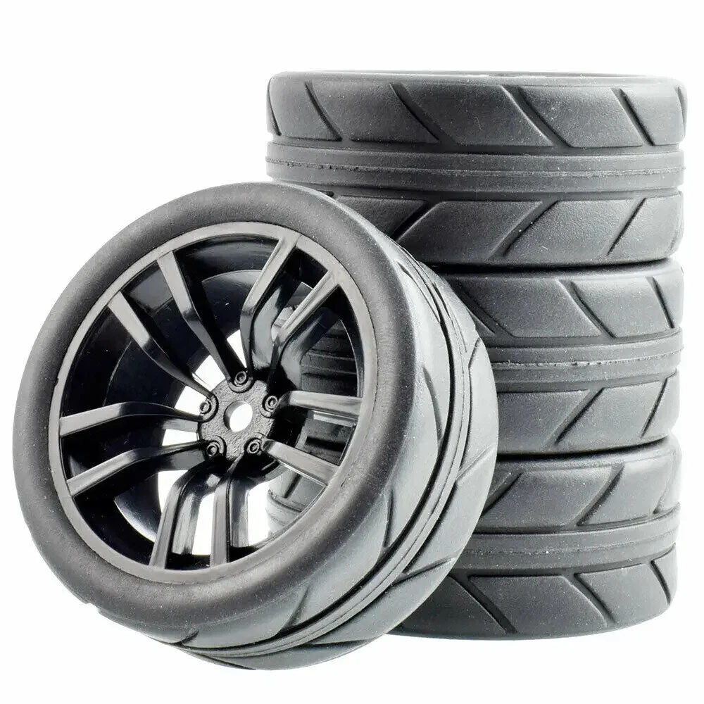 RC Rim Grip TiresTires & Wheel sets For HSP HPI tt01 tt02 MST TAMIYA 1/10 On-Road Racing Car 100% Brand New Plastic Wheel / Rubber Tires Rubber Tires Diameter: 64mm / Width: 26mm Wheel Diameter: 52mm / Width: 26mm Wheel Hex Drive: 12mm 4xWheel and 4xTires Complete, Insert Sponge Note: Please take refer to your instruction of item number and photo. This color photographs and pratical items May have little color difference!