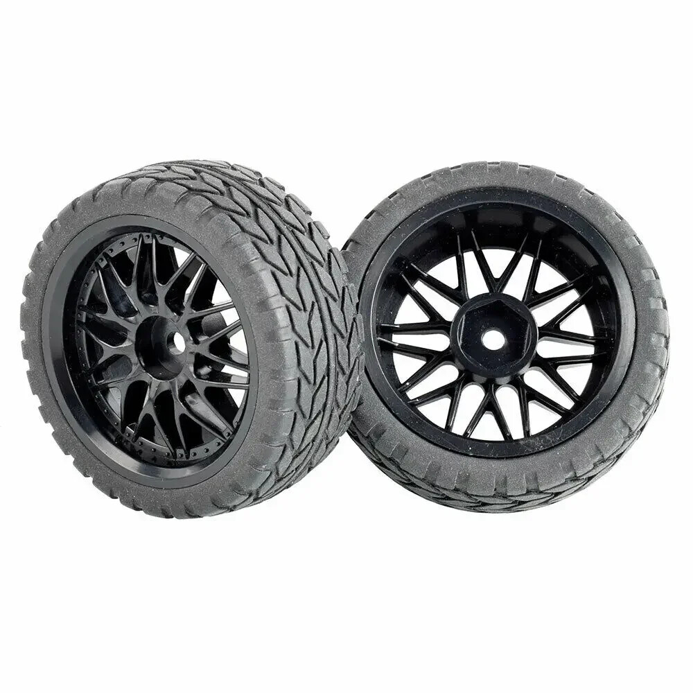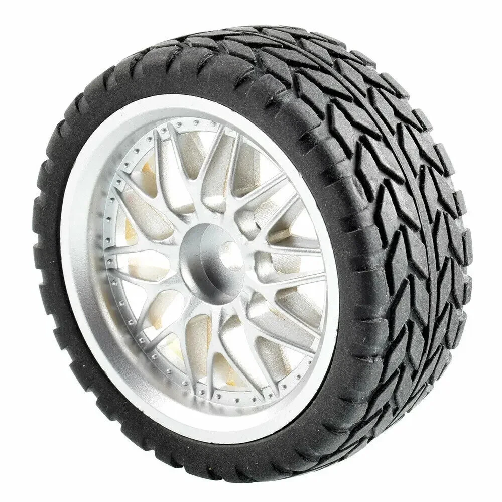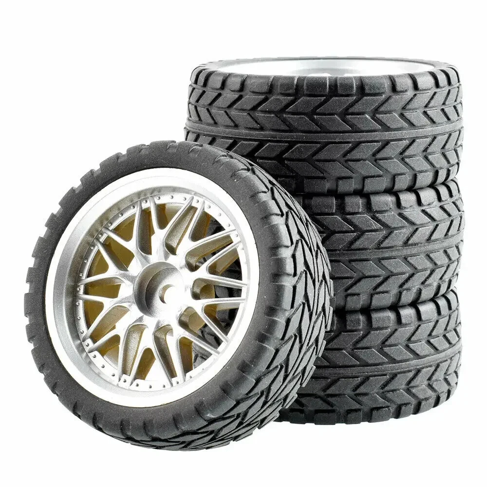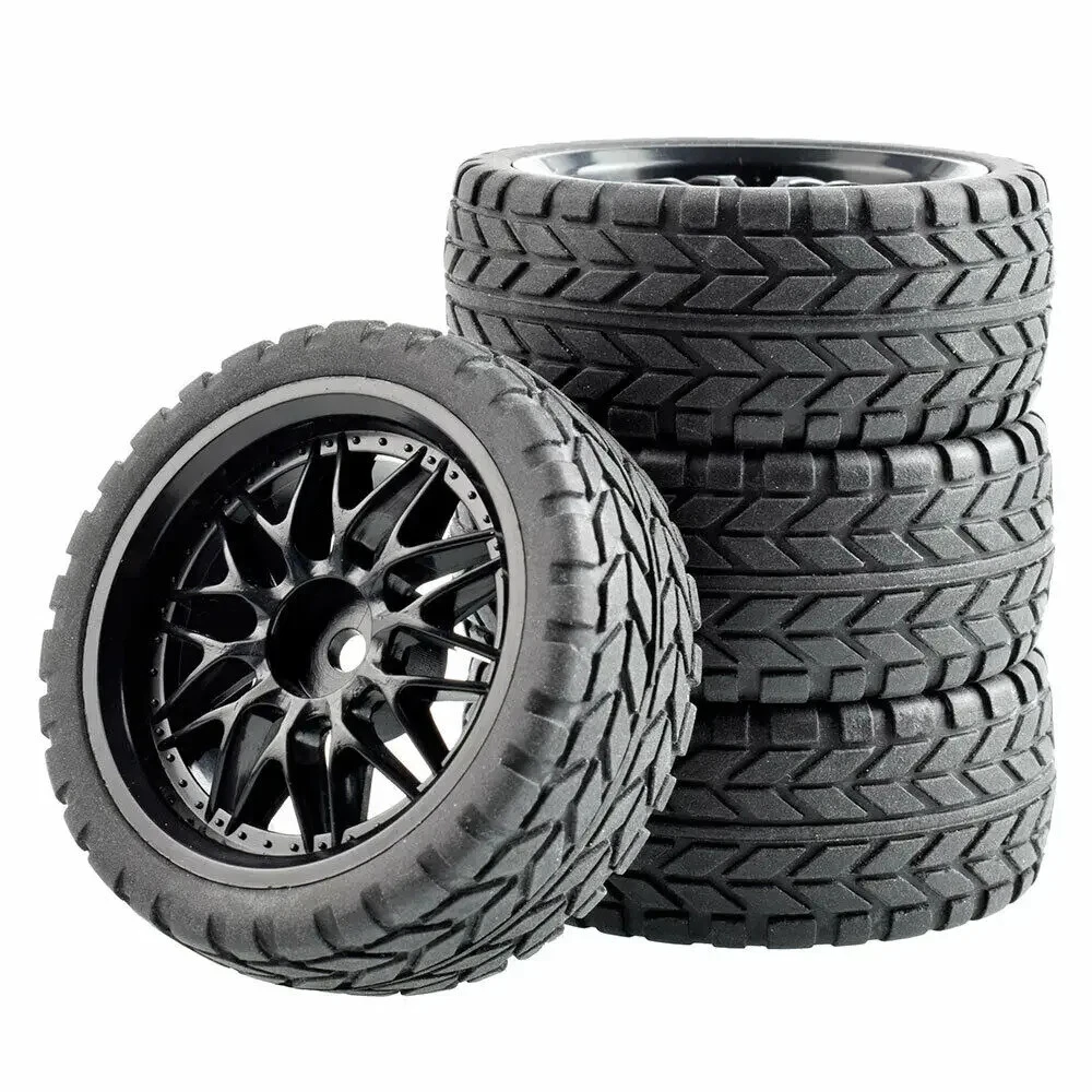100% Brand New Plastic Wheel / Rubber Tires Rubber Tires Diameter: 64mm / Width: 26mm Wheel Diameter: 52mm / Width: 26mm Wheel Hex Drive: 12mm 4xWheel and 4xTires Complete, Insert Sponge NOTICE: The wheels and tires are not glued together and must be glued before use. Please carefully check the tire size before purchase, whether it is the same as your model tire size, and confirm it again before payment, so as not to return the refund, thank you, wish you a happy shopping.