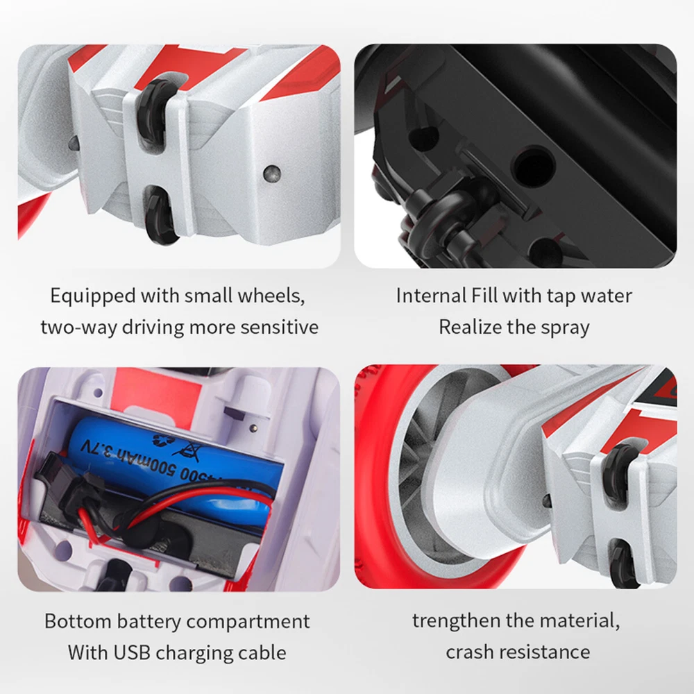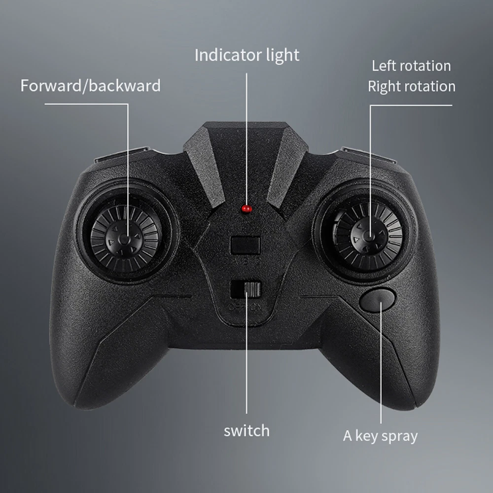 Product Description Features: -- 4WD Double Sided Stunt RC Car Spray Drift Racing 2.4G RC Tumbler. -- 2.4G 5-pass remote control, forward and backward, left and right rotation, flip drift, lights, one key spray; 【Double Sided Driving】Fearless body overturning, control driving, such as hitting the obstacles, will automatically 180 ° turn over after driving as usual, a variety of terrain obstacles are easily conquered, complex road conditions such as walking on the ground, to conquer a variety of surfaces, such as rocky roads, sandy, highway and so on; 【 Simulation Spray 】 Tail light spray simulation exhaust, to the body battery internal water injection port with water traveling spray simulation exhaust; 【 Anti-collision and drop resistance 】 bump texture vacuum cross-country tires, stunt car using vacuum cross-country tires, soft texture stunt car using vacuum cross-country tires, soft texture surface bump texture, stronger grip; 【 360°rotation】360°stunt rotation multi-directional control, stunt car can be forward/backward multi-directional travel can also be in situ 360°rotation; 【 Gorgeous Lights 】 Cool LED lights are more fun at night, the body is equipped with 2 high brightness LED blue lights are turned on, play more enjoyable; 【 2.4G remote control 】 2.4G remote control solid control, signal stability, remote control distance to support more than one stunt car on the same stage competition 【 Long battery life 】 body battery 3.7V 500mah lithium battery pack; charging time 90 minutes, use time 30 minutes; Parameters: Name: double-sided spray stunt car Item No: CX-84 Material: ABS + electronic components Capacity: 500mAh Remote control batteries: 3 “AAA” batteries (not included) Distance: 50 meters Product size: 16x15x7CM Body battery: 3.7V 500mah lithium battery Charging time: 90 minutes Use time: 30 minutes Note: For initial use, first fully charge the battery Installation steps: 1. Unscrew the screws on the battery cover with a screwdriver and remove the battery cover. 2.Connect the lithium battery to the power connector of the RC car. 3.Install the battery into the battery compartment and screw it on. Packing list: 1*Stunt car 1*USB charging cable 1*Remote control 1*Screwdriver 1*Water bottle Payment Shipping Terms Returns Contact Us We accept PayPal only. If buyer want to delay the payment because of financial problem, please contact me by the ebay message within 3 days Payment via PayPal (PayPal accepts all major credits/debit cards and eCheque) ECheque payment will tak e 3-10 days to get clear, thus DELAYing the shipment. Handling time: 1 business day (Orders are not processed on weekends & holidays) Tracking information will be sent once item is shipped. Local pick-up is unavailable at the moment. For international shipping and shipping to Guam, Hawaii and Alaska, Please contact us before placing the order. Item is shipped to ebay address. Leaving correct address can minimize delay. For any issues with Defects, Return, Item Exchange request, please contact us first and send us a message first before opening any type of case or request. We devote ourselves making EVERY CUSTOMER in 100% Satisfactory and resolve any problem. We highly value and appreciate your business. Thank you. No returns will be accepted without an RMA number. Please contact us for the RMA number. Return is acceptable within 30 days of delivery. Return for replacement or money back is optional. Returned items must be in the brand new, unaltered and resalable condition. Seller is not responsible for any labor cost, expense in a dealer store, or damage due to wrong installation. Return is accepted within 14 days after the buyer's receiving the item. (Excluding contrived damagement or misusage).100% money-back Guaranteed! All product will be tested in 100% before delivery.If the item is defected by the processing of postage,Buyer has up to 14 days from date of receipt for exchange of a new one.All shipping charges for returned products are to be paid by the buyer,Please contact us for the return address All messages will be answered within 24 office hours. Please contact us either by clicking "contact seller" in the "purchase history" section or simply click "ask a question" at the bottom of this page. If you are unsatisfied with our item or service, please contact us before leaving any feedback. We are committed to resolve all issues in a friendly and satisfactory manner. We always reply to messages within 2 business days (off-duty at weekend). If you do not get a response from us, then please check your junk or spam mailbox. Payment We accept PayPal only. If buyer want to delay the payment because of financial problem, please contact me by the ebay message within 3 days Payment via PayPal (PayPal accepts all major credits/debit cards and eCheque) ECheque payment will tak e 3-10 days to get clear, thus DELAYing the shipment. Shipping Handling time: 1 business day (Orders are not processed on weekends & holidays) Tracking information will be sent once item is shipped. Local pick-up is unavailable at the moment. For international shipping and shipping to Guam, Hawaii and Alaska, Please contact us before placing the order. Item is shipped to ebay address. Leaving correct address can minimize delay. Terms For any issues with Defects, Return, Item Exchange request, please contact us first and send us a message first before opening any type of case or request. We devote ourselves making EVERY CUSTOMER in 100% Satisfactory and resolve any problem. We highly value and appreciate your business. Thank you. No returns will be accepted without an RMA number. Please contact us for the RMA number. Return is acceptable within 30 days of delivery. Return for replacement or money back is optional. Returned items must be in the brand new, unaltered and resalable condition. Seller is not responsible for any labor cost, expense in a dealer store, or damage due to wrong installation. Returns Retur