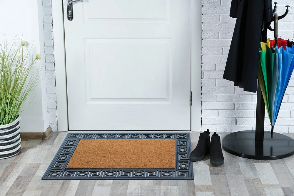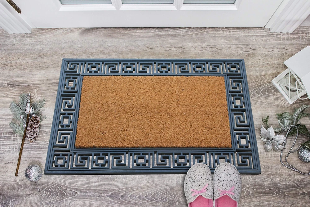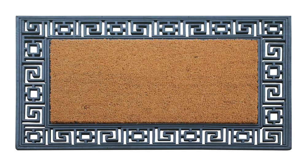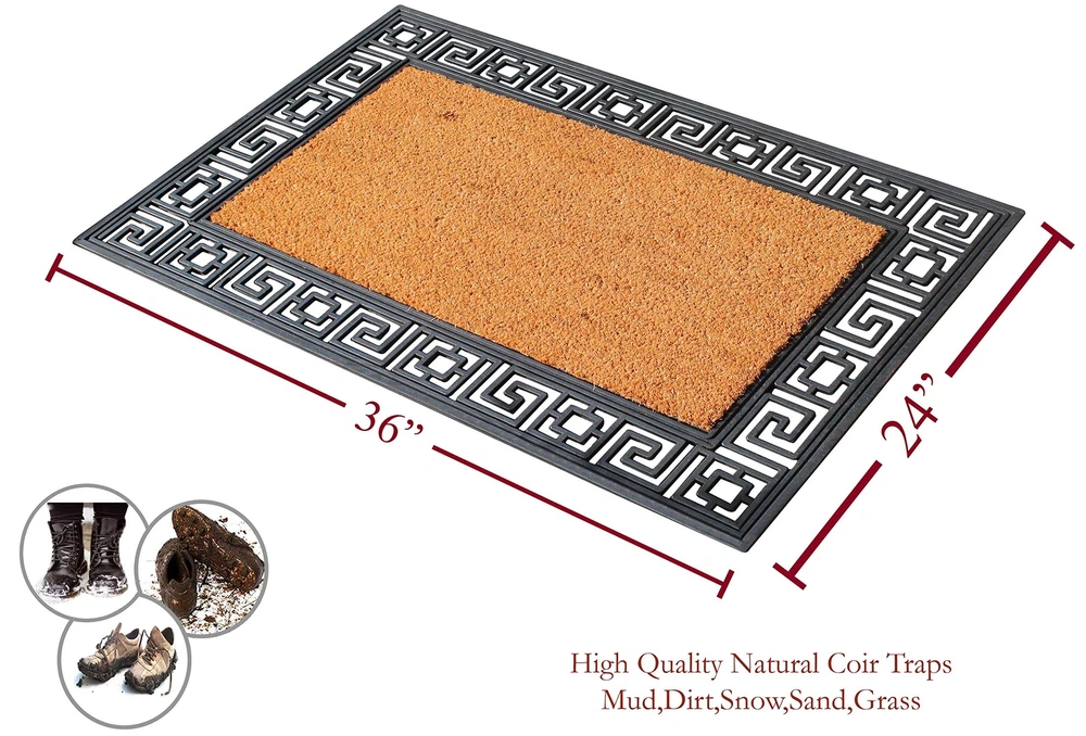 More than a decorative enhancement this rubber & coir doormat is made With a heavy rubber backing that anchors it in place while you brush dirt & debris from shoes & boots. The tufted coco-fiber facilitates scrubbing soles clean. 100%Coconut coir fiber - natural fiber face provides the perfect surface for guests to wipe their shoes before entering your home. Heavy weight - rubber border firmly anchors the mat in place. Place before every exterior door - use on a patio, in a garage, entryway, and anywhere there is high traffic from outside. Use in covered outdoor areas. Perfect size for your large entry - doormat measures 24" X 36" And is thick to allow your door to easily pass over the mat without getting stuck. Decorative all Season popular design - adds a unique touch to your front door or back door while being very functional. ENVIRONMENTAL FRIENDLY OUTDOOR RUG: Made from 100% Hard Wearing Coir Eco friendly Rubber base .These doormats are completely Biodegradable & compostable. Adds a unique touch to your front door or back door while being very functional. Only for use in covered outdoor areas. Do not expose directly to sunlight or rain.