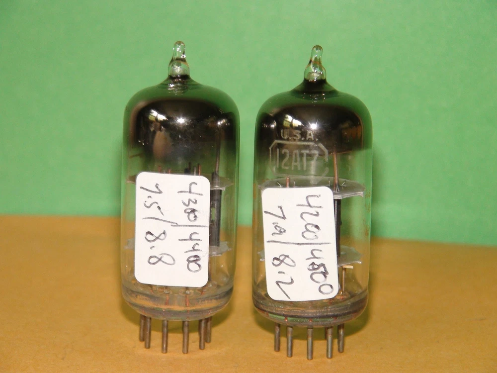 RCA 12AT7 ECC81 Black Plates Vacuum Tube (2) Available Strong & Balanced Last Picture shows both tubes . Sold Separeatly. ^^^^^^^^^^^^^^^^^^^^^^^^^^^^^^^^^^^^^^^^^^^^^^^^^^^^^^^^^^^^^^^^^^^^^^^^^^^^^^^^^^^^^^^^^^^^^^^^^^^^^^^^^^ The measurements provided were made on a Triplett 3444 that has been modified to test tubes in accordance with the original manufacturer’s stated test conditions, including bogey values. This includes the use of cathode bias where specified. This tester was prepared by Paul Hart of Roswell, GA. Further information is available on request. Industry Bogey transconductance =5500|5500µmhos Industry Bogey plate current = 11.0|11.0mA Results = 4200|4500 µmhos ~ 7.9|8.2mA . Tube #1 = 4300|4400 µmhos ~ 7.5|8.8mA Tube #2 ^^^^^^^^^^^^^^^^^^^^^^^^^^^^^^^^^^^^^^^^^^^^^^^^^^^^^^^^^^^^^^^^^^^^^^ USA Shipping $6 I have many other types of tubes ~ No Additional Shipping Charges All tubes Guaranteed Thank you ~~~~ Please click on the link below to view more items in my store. ~~~~~~~~ GreenGirl's Guaranteed VintageTubes w3