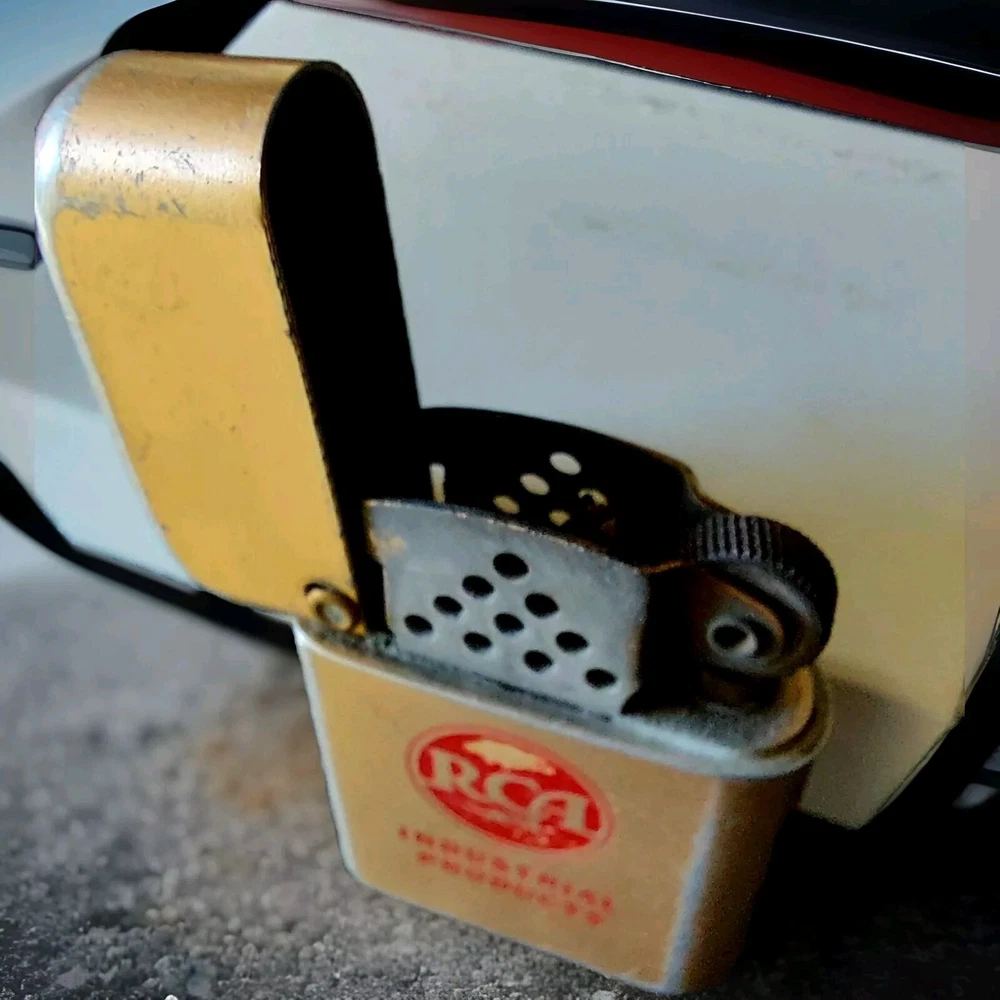 This vintage 1950s cigar lighter is a true gem for collectors and tobacciana enthusiasts alike. Made by RCA Service Co, this piece is a testament to the quality of their work and the durability of the brand. The lighter has been well-maintained and was in excellent working order, making it a great addition to any collection. However it hasn't been used in ages ,therefore there is not guarantee. With its classic design and United States origin, this lighter is a must-have for any vintage tobacciana collector. The lighter features the RCA Service Co logo and is marked as a "Industrial Products."Don't miss your chance to own a piece of history with this vintage cigarette lighter which is really hard to find.