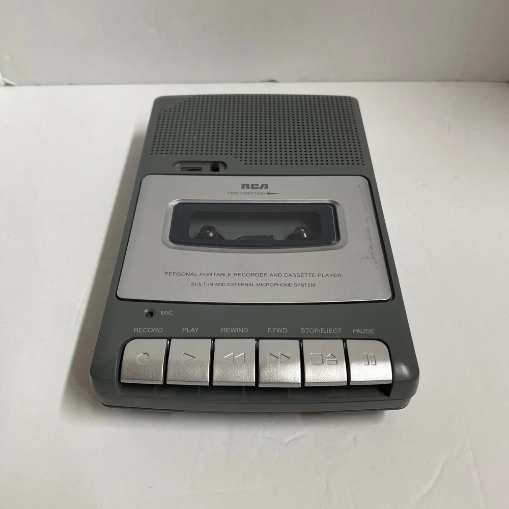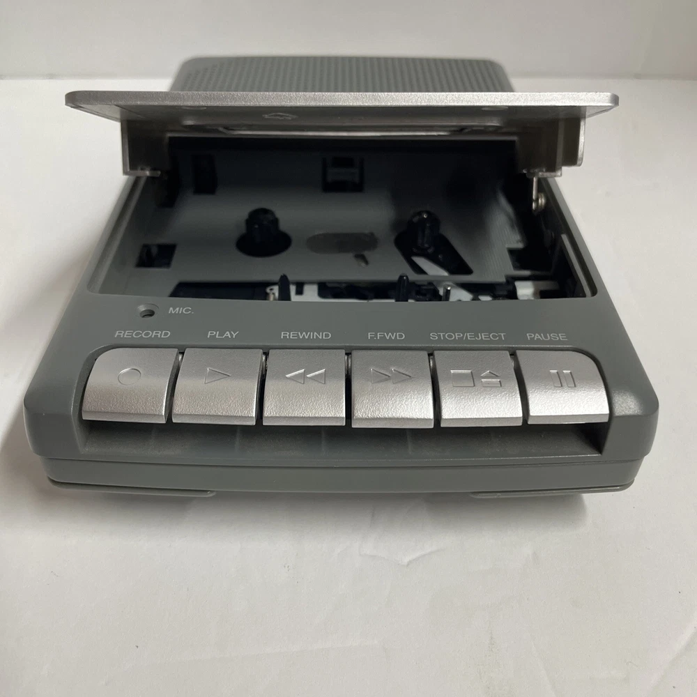 This RCA RP3503-B Personal Portable Cassette Tape Recorder Player is a reliable and compact device that allows you to play and record cassette tapes on the go. It comes in a sleek gray color and features a built-in and external microphone system, as well as audio inputs and outputs for versatile connectivity. SOLD AS IS NO REFUNDS