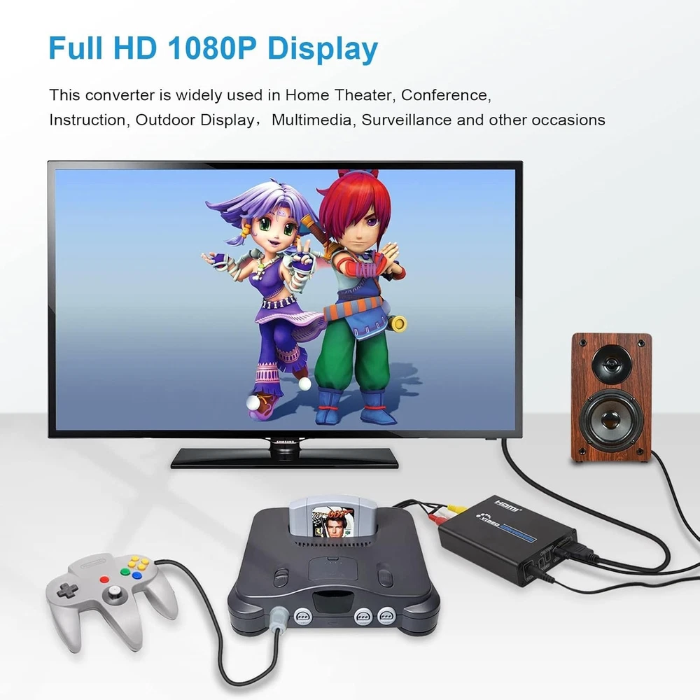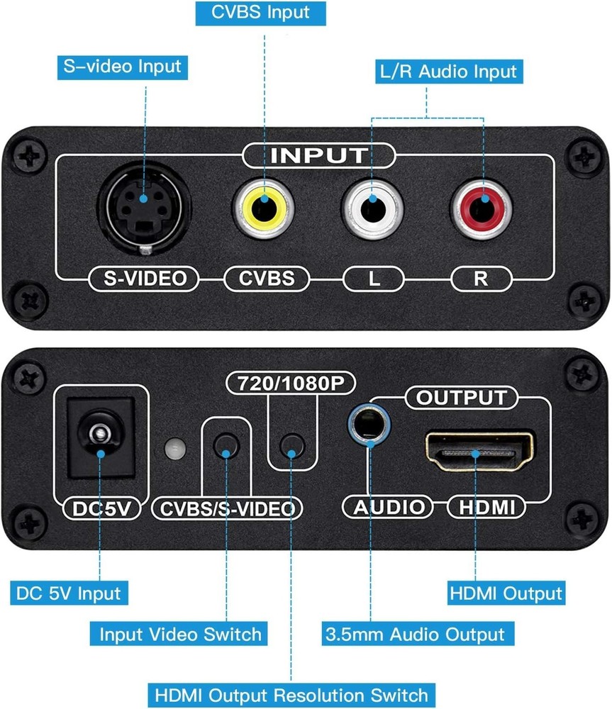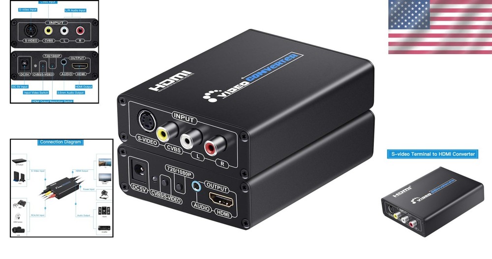 RCA Svideo to HDMI Converter with RCA S-Video Cables Full HD Upscale for Cameras ‹ › ‹ › ‹ › ‹ › ‹ › ‹ › ‹ › ‹ › ‹ › RCA S-Video to HDMI Converter Experience the revival of your beloved vintage devices with our RCA S-Video to HDMI Converter. This luxurious converter is meticulously designed to breathe new life into your cherished cameras, VCRs, DVD players, and classic gaming consoles, by transforming their RCA or S-Video signals into stunning HDMI output. Features: Seamless Conversion: Converts Composite RCA or S-Video signal to HDMI, allowing you to enjoy standard definition video in breathtaking full HD. Versatile Upscaling: Supports input signals of 480i(NTSC) or 576i(PAL), upscaling to 720P/1080P for an incredible viewing experience. Dual Connection: Connect both RCA and S-Video simultaneously and switch easily with a convenient button. Broad Compatibility: Perfectly compatible with a variety of devices including NES, SNES, N64, Dreamcast, Saturn, Megadrive, Master System, Game Cube, Wii, Xbox, and many more. Plug and Play: Ready to use right out of the box with included Composite and S-Video cables - effortless installation and operation. Elevate Your Viewing Experience Transform the way you enjoy classic entertainment! Our RCA S-Video to HDMI Converter allows you to connect your aging devices to modern HDMI TVs, projectors, or monitors with ease. Say goodbye to compatibility issues and hello to high-definition enjoyment! Why Choose Our RCA S-Video to HDMI Converter? This is not just a converter; it’s a gateway to nostalgia! Designed for the discerning consumer, it offers impeccable quality and performance that stands out among cheaper alternatives. The intuitive design and high-quality construction ensure a reliable connection and superior output, perfect for those who value both functionality and elegance. Indulge in the luxury of upscaled classics. Order your RCA S-Video to HDMI Converter today and bring the past into the present with stunning clarity! Shipping Free & Fast Shipping - We offer free shipping to most of the USA with a normal delivery time of 3-7 days. However, due to the current situation, additional delivery time (up to 3 weeks) may be required for some items. Alternative Carriers - We may use alternative carriers (e.g. USPS, FedEx, UPS, etc.) to ensure your package arrives safely and on time. Due to the use of multiple carriers, we are unable to provide a tracking number automatically. Handling Time - Orders are processed and shipped within 1-2 business days of receiving cleared payment. Shipping Restrictions - Shipping to Alaska, Hawaii, Puerto Rico, Guam, and other US territories may incur shipping charges or delivery restrictions. Please contact us before ordering, or your order can be refunded/cancelled. State Restrictions - There may be restrictions based on your state of purchase. For example, certain items may not be shipped to California due to state regulations. Contact for Tracking Updates - If you require tracking updates or have any concerns about the delivery of your order, please feel free to contact us, and we will be happy to assist you. Return 30-Day Hassle-Free Returns - We want you to be completely satisfied with your purchase. If you are not, you can return the item within 30 days of receiving it for a full refund or exchange. Easy Return Process - To start a return, simply contact us and we will provide you with a prepaid return shipping label and detailed instructions. Restocking Fee - There are no restocking fees for returns. However, the buyer is responsible for return shipping costs if the return is not due to a seller's error. Refund Processing Time - Refunds will be processed within 5 business days of receiving the returned item in its condition. Payment We accept all major credit cards, PayPal, and Apple Pay for your convenience. Your payment information is secure and encrypted to ensure a safe and seamless transaction. Please complete your payment within 3 days of purchase to avoid any delays in shipping. Feedback Your feedback is extremely important to us. We strive to provide the best products and customer service possible. If you are satisfied with your purchase, please take a moment to leave us a positive review. If you have any concerns or issues with your order, please contact us before leaving negative feedback. We are committed to resolving any problems and ensuring your satisfaction. Contact Us If you have any questions or concerns, please feel free to out to our customer support team. You can contact us through the eBay messaging system. We are available Monday to Friday, 9:00 am to 5:00 pm EST, and we will do our best to respond to your inquiry within 24 hours. Buy it now and enjoy a pleasant shopping experience! Unit Quantity: 0.64 Item Height: 1 Centimeters Connector A: RCA Connector B: HDMI Features: Portable,Easy installation,Plug and play Compatible Model: Universal,For cameras,For DVD players,For projectors,For TVs Type: Converter Connection Split/Duplication: 1:1 Output Voltage: 5 V Unit Type: oz Color: Black
