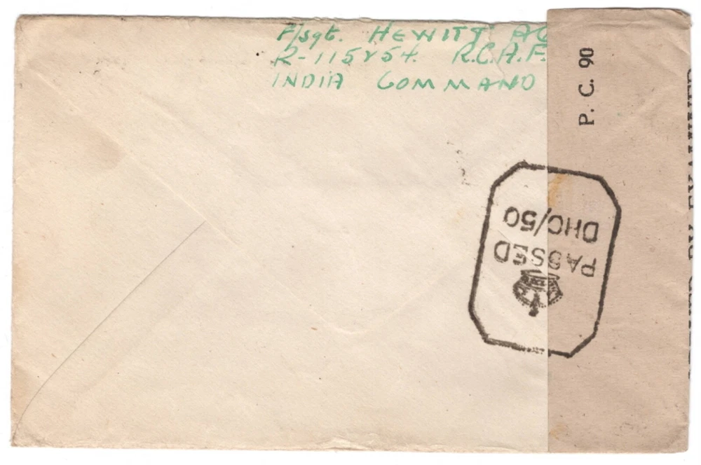 HomeRCAF - Southeast Asia WWII 1943 India - RAF Censor Cover to Toronto