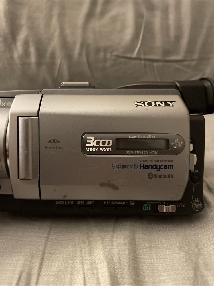 A Sony Handycam DCR-TRV950 Camcorder, which is in alright cosmetic condition with a few nicks here and there. It does not power on and I do not know what the problem is. NO BATTERY