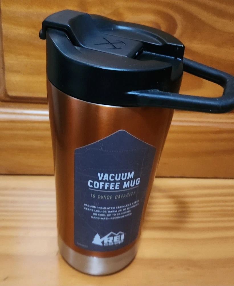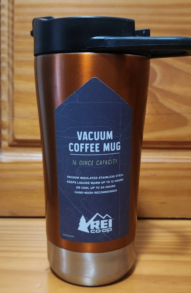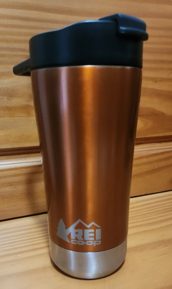 REI Co-op Stainless Steel Vacuum Coffee Water Travel Bottle Mug with Lid 20oz Light paprika/copper color Warm or cold beverages New with tag