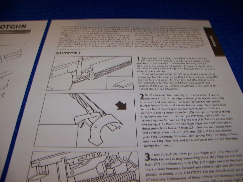 UP FOR SALE IS AN ORIGINAL PRINT 2-PAGE DRAWINGS ON ....... REMINGTON 3200 SHOTGUN (12 GA.) (2-PAGES) Page/s size: APROX: 8 1/2" X 11" SUBJECT: . REMINGTON 3200 SHOTGUN (12 GA.) . . . . .....PERFECT FOR FRAMING!!! AUTHOR/ARTIST: N/A YEAR: 2009 ORIGINAL PRINT SCALE: N/A ARTICLE FEATURES: EXPLODED VIEW WITH PARTS LEGEND (IF SHOWN)/DETAILS/MAGAZINE (IF APPLICABLE)/SHORT DISASSEMBLY INSTRUCTIONS CONDITION: GREAT-LIGHT COLORING(NORMAL)..NOTE: ** SOLD FOR 2-PAGES DRAWINGS/PROFILES ...ANY OTHER ARTICLE ON BACK OF DRAWINGS/ARTICLE ARE NOT REPRESENTED IN THIS AUCTION!*** (REMEMEBER THESE ARTICLES ARE EXTREMELY OLD AND RARE...SOME MAY HAVE SOME BORDER DISCOLORATION/SMALL EDGE CHIPS/PAGE DISCOLORATION)/BINDING CUTOUTS.....SEE CONDITION AND NOTES LISTED ABOVE AS TO EACH ARTICLE! **THESE ARE AIRCRAFT ARTICLES THAT HAVE BEEN EXTRACTED FROM VINTAGE MAGAZINES/ECT,.. AND ARE INDIVIDUAL PAGES OF EACH SUBJECT AND SOLD AS COMPLETE ARTICLES ON EACH SAID AIRCRAFT AS LISTED ABOVE!.. NOT SOLD AS A COMPLETE MAGAZINE or BOOKLET!!! **all articles are shipped flat on cardboard flat and mail flat in manila envelope to INSURE condition! ** I DO OFFER COMBINED SHIPPING ON MULTIPLE ITEMS PURCHASED