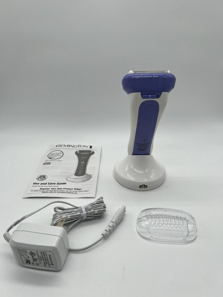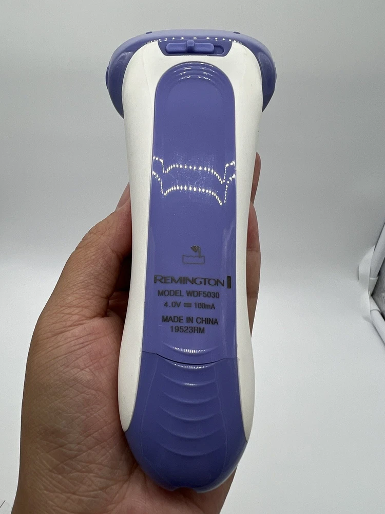 REMINGTON Smooth & Silky Electric Wet/Dry Shaver White & Purple Model WDF5030. Used, tested it works. No Box! Item: R2(26) 4 Blade Shaver: The hypoallergenic foils and trimmers move smoothly across the skin and leave no hair behind Optimal Angle Head: Shaving blades are positioned so that foils stay flush to the skin for a close, comfortable shave Flex Dual Sided Trimmer: Get speed and smoothness from this special blade that preps longer hairs to be cut by the foils Lift Logic Foils: The unique foil design allows for even shaving of all hair lengths by angling hairs towards the blades One full charge allows 30 minutes of cordless usage time; Recharge Time: 24 Hours