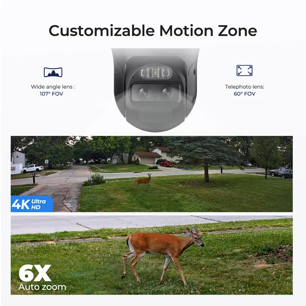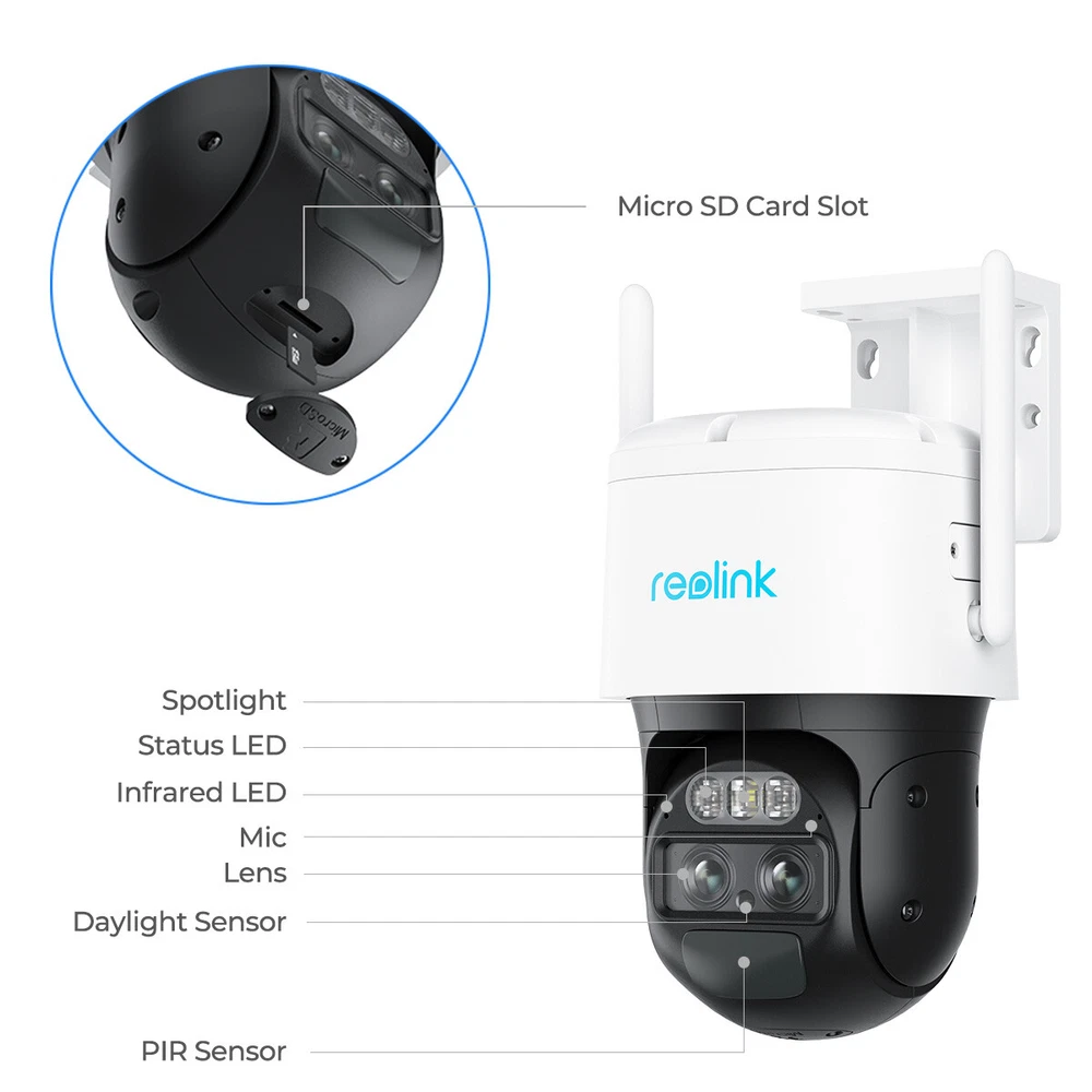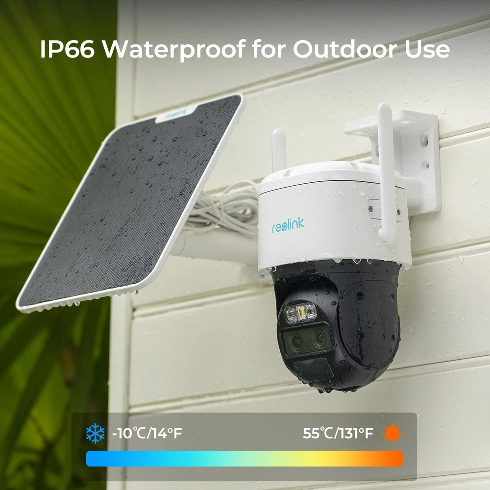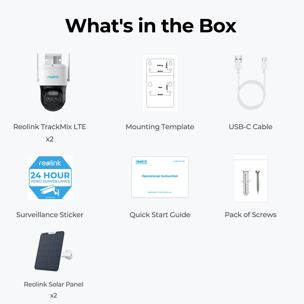 REOLINK Dual Lens Cellular Security Camera, 4G LTE Auto Tracking No WiFi Solar Powered Outdoor Camera, 6X Hybrid Zoom, 4K Color Night Vision, Motion Alert, Playback, TrackMix LTE + Solar Panel Condition: Open Box/New Retail: $320.00 Camera and solar panel are new and have been checked for damage (no damage). Please our pictures for better idea on physical condition. Tested and does work. Brand REOLINK Model Name TrackMix LTE+SP Connectivity Technology 4G LTE Cellular Special Feature Night Vision, PTZ Technology Indoor/Outdoor Usage Outdoor - Dual View on One Screen: With 6X hybrid zoom enabled by the wide-angle and telephoto lenses, this 4G security camera brings you a full view and a closeup of key details on one screen. You can see them both at one glance. - Covers Every Corner & Detail by PTZ Auto-Zoom Tracking: Control the camera to pan 355° and tilt 90° to see 360°. It can also track and zoom in on the moving object automatically, clearly showing you how the event unfolds. - Get Alerted to What Matters in Real Time: The camera can distinguish people, vehicles, and pets from other objects and provide relevant alerts. You'll get notified by email, app push, or siren immediately. - Crisp 4K Video Day & Night: With 4K 8MP high resolution, the dual lens sharply captures fine details. In the night, it provides infrared black-and-white night vision and spotlight color night vision. - 3G/4G LTE Network & Forever Solar Power: The combination of the solar power panel and 4G connection on this cellular camera saves you from the troubles of finding sockets or networks outdoors Ideal for country houses, construction sites, etc. Compatible SIM card carriers: EIOT Club, T-Mobile (prepaid data card only), Freedompop, AT&T.