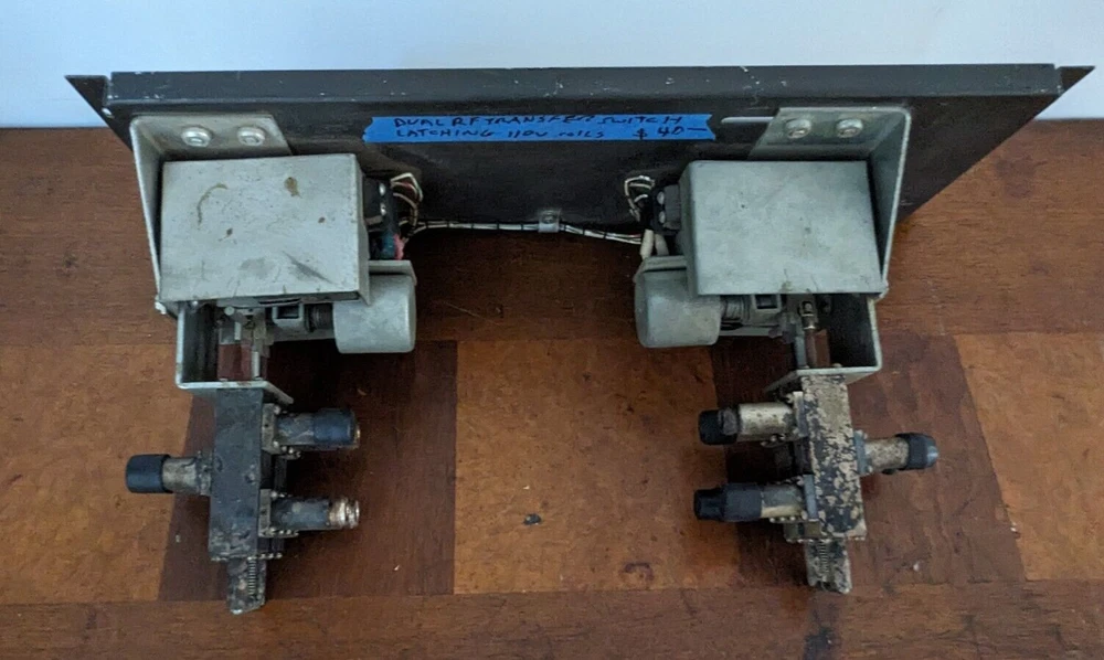 DUAL RF Transfer Switch latching 110V coils dimensions : 19 x 6.5 x 9.5" Coming from estate sale. Untested, sold as is. ** We ship via USPS to 50 States (excluding APO/FPO) or UPS to 48 States in USA only. ** Please make your payment within 48 hours after the auction ends. ** We will ship within 48 hours (excluding weekends) after the receipt of your payment. ** Please email us if you purchase more than 1 item. We will try to combine the shipments whenever possible. ** If any questions, please contact us before your bidding. ** If there is any problem with the shipment, please contact us ASAP before you leave a feedback. T H A N K Y O U