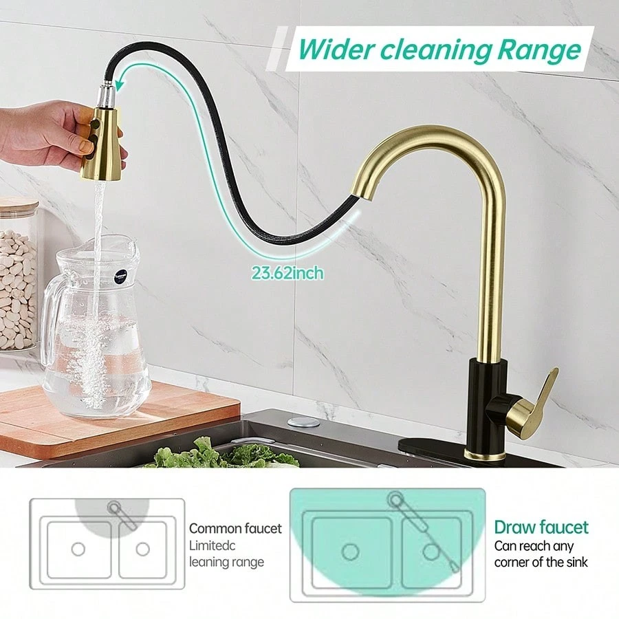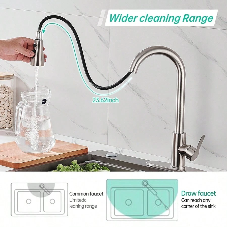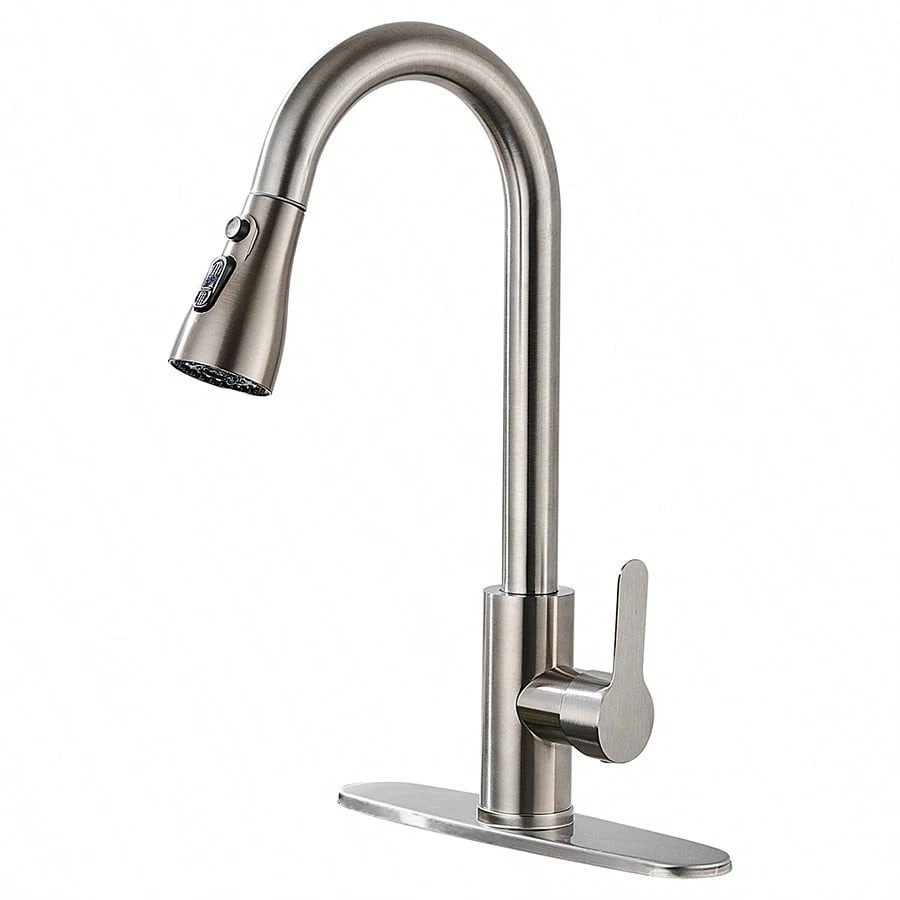 This high-arc pull-down kitchen faucet is a game-changer! The brushed nickel finish looks sleek and modern, while the smooth swivel and powerful spray make cleaning dishes a breeze. The magnetic docking keeps the spray head securely in place, and the installation was surprisingly easy. Great water pressure, no leaks, and it feels sturdy—definitely worth every penny!