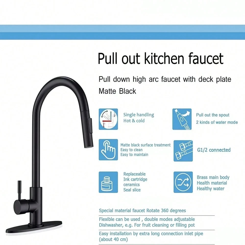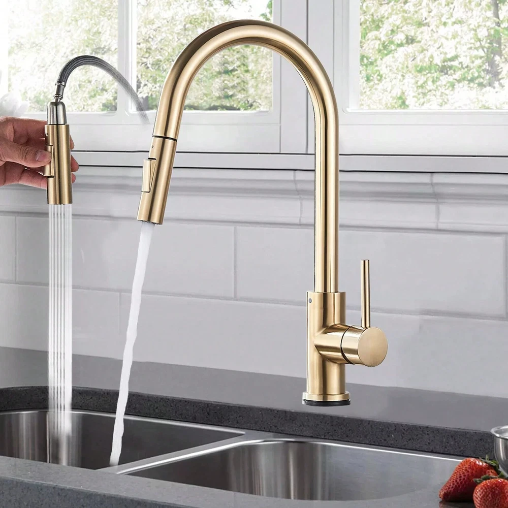 Home【RFG】Brushed Gold/Brushed Nickel/Matte Black Kitchen Faucet With Pull Down