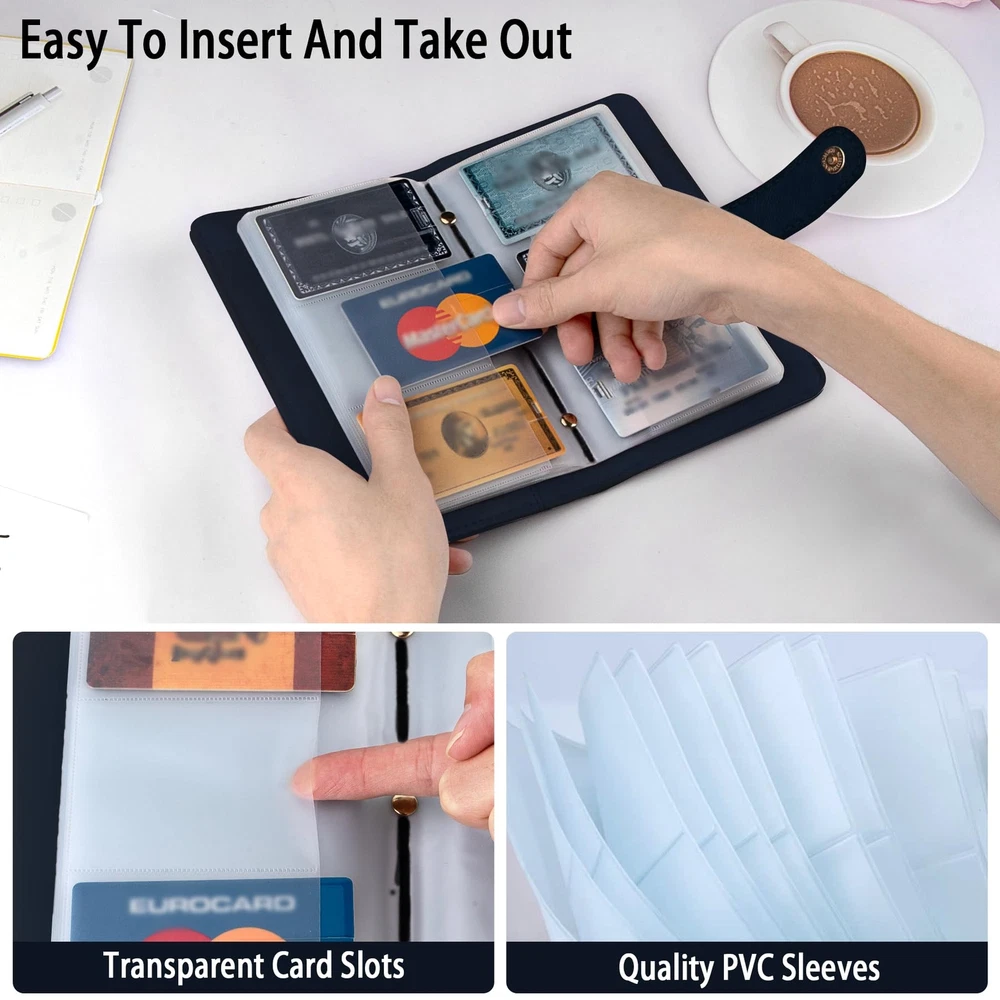 【Premium PU Leather】100% brand new! Made of premium PU leather materials. Various styles for you choose - Solid color and elegant printed patterns. Designed with pretty and delicate patterns, applied excellent printing technology to ensure color vibrant. It can be a good gift for your Friends, Family or Colleagues,etc. If there is any further questions please feel free to us. 【Multipurpose and Large-capacity】For the size details please refer to our size chart photo in the listing. Book binder style with large capacity which has 32 card slots can holds 192 pieces business cards. You can keep credit cards, debit cards, ID card, etc. to prevent loss and damage. Book style is easy to carry and you can find your cards easily. 【Super Material】We use the best material for our products, premium faux leather for business card holder /credit card organizer ,durable thick PVC slots can organize your cards very well. 【Pratical Design】The Card Organizer book with 96 Card Slots, which can holds 96 Credit Cards or up to 192 Business Cards well , with a sturdy magnetic clasp keeps all cards in place without loosening. And the translucent PVC Card pages make it find and read card information easily, aslo easy to insert and take out. 【Best Gift】With various printed patterns and sweet solid color designs, you can use it as a gift for birthdays or holidays, such as Christmas, Easter, Valentine's Day, etc. I believe that your friends and relatives, who receive the well-made, fashionable and beautiful Business Card Holder set, will surely like it very much!