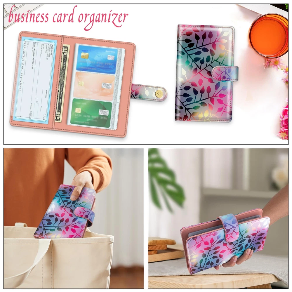 【Premium PU Leather】100% brand new! Made of premium PU leather materials. Various styles for you choose - Solid color and elegant printed patterns. Designed with pretty and delicate patterns, applied excellent printing technology to ensure color vibrant. It can be a good gift for your Friends, Family or Colleagues,etc. If there is any further questions please feel free to us. 【Multipurpose and Large-capacity】For the size details please refer to our size chart photo in the listing. Book binder style with large capacity which has 32 pages with 96 card slots can holds 192 pieces business cards. You can keep credit cards, debit cards, ID card, etc. to prevent loss and damage. Book style is easy to carry and you can find your cards easily. 【RFID Blocking Book】This cards holder book is made from special RFID blocking material that prevents thieves from scanning digital and electronic chips. It can protect your cards safe enough. 【Pratical Design】The Card Organizer book with 96 Card Slots, which can holds 96 Credit Cards or up to 192 Business Cards well , with a sturdy magnetic clasp keeps all cards in place without loosening. And the translucent PVC Card pages make it find and read card information easily, aslo easy to insert and take out. 【Best Gift】With various printed patterns and sweet solid color designs, you can use it as a gift for birthdays or holidays, such as Christmas, Easter, Valentine's Day, etc. I believe that your friends and relatives, who receive the well-made, fashionable and beautiful Business Card Holder set, will surely like it very much!