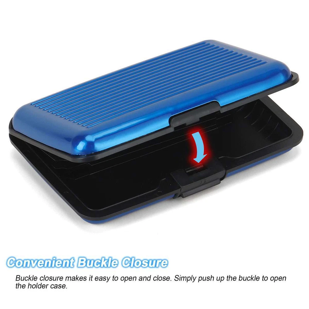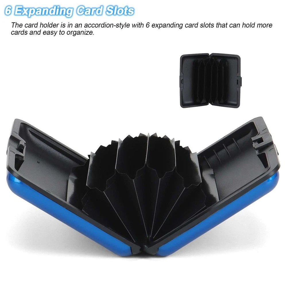 Product Description Specifications: Material: Aluminum Alloy Optional Color: Red, Purple, Black, Silver, Blue Size: 11*7.5*2cm / 4.3*3*0.8in Pattern: Solid Closure: Buckle Style: Simplicity Gender: Unisex / Men / Women Occasion: Daily, outings, travel, work, school, outdoor activities, etc. Features: · Sturdy Metal Credit Card Holder: This credit card holder case is made of premium aluminum alloy material, lightweight, wear-resistant and sturdy, nicely holds your credit cards to protect them from bending and damage. · Compact Pocket Size & Sleek Pretty Appearance: It is of a compact size that easy to carry in your pocket and easy to store and it features a sleek pretty appearance that comfy to touch on. · 6 Expanding Card Slots: The card holder is in an accordion-style with 6 expanding card slots that can hold more cards and easy to organize. · RFID Blocking for Information Protection: The card holder is made of RFID blocking metal that helps to shield your credit cards and bank cards from RFID information thefts. · Multipurpose Holder Case: It can be used for holding your ID cards, bank cards, credit cards, business cards, cash, coins, small ornaments, etc. · Convenient Buckle Closure: Buckle closure makes it easy to open and close. Simply push up the buckle to open the holder case. · 5 Color Options & Excellent Gift Choice: It is available in 5 colors to meet your preference and it is a pretty gift choice for your family member or friend. Notes: * Due to effect of light, camera and monitors, the item’s real color may be slightly different. * Allow slight dimension difference due to manual measurement. * Thank you for your kindly understanding. WARNING for California Residents: This product can expose you to chemicals including Diisononyl phthalate (DINP), which is known to the State of California to cause cancer. For more information, go to: https://www.p65warnings.ca.gov/. Package Includes: 1 PC Credit Card Holder (Others are NOT included) Payment Shipping Returns PayPal is easy and safe, and we only accept PayPal payment. Please do not hesitate to contact us if you have any questions of payment procedures. Sales Tax: California residents, please add 8.75% for sales tax. Ship To Services Handling time Insurance Tracking Number USA Standard Shipping 1-6 Not include With CANADA USPS First Class Mail \International 5-10 Not include With Items dispatched to buyer's PayPal confirmed address from Monday to Friday (weekend & Holiday excluded) after payment has been received. Please check your shipping address carefully before checkout. If you want to change the address, pls kindly contact us through ebay message within three hours after payment. Otherwise, any change information may be disregarded once dispatched. Postage includes packaging material, shipping label, handling fee and so on. Do not provide local pick up service. Customers must contact us within 7 days to make a refund for all non-used products and buyers should return package with paid shipping label to our warehouse within 30 days since the delivery date.Issurance fee, shipping and handling charges are non-refundable. All NON-Seller's Mistake(E.g buyer change idea,dislike item or buy wrong item)returns for refund or replacement must contact seller first ,then all the problem will be processed.On this case,the buyer are responsible for shipping and handling charge as well as return fee. Any quality problem happened within warranty time, buyer has an obligation to cooperate with seller to verify the item's problem,If need replacement or refund,buyer are responsible for all kind of return shipment. Warranty service is limited to normal usage, any other artificial damage (such as disassembling by user, connecting with non-compatible accessories, not use according to the instruction and any other accident damage.Any maintainance and refit without seller's confirmation and upgrade, crack and the natural scratches on the plastic surface and accessories etc) as well as warranty stick damaged are out of warranty. Please make sure the item is intact and quantity is complete before signing the package or the item will be returned at once. Seller will not responsible for any problems such as breakage and deficiency after buyer signed. Please make a note in a paper with your eBay UserID,purchased date and details of the issue you are experiencing. Payment PayPal is easy and safe, and we only accept PayPal payment. Please do not hesitate to contact us if you have any questions of payment procedures. Sales Tax: California residents, please add 8.75% for sales tax. Shipping Ship To Services Handling time Insurance Tracking Number USA Standard Shipping 1-6 Not include With CANADA USPS First Class Mail \International 5-10 Not include With Items dispatched to buyer's PayPal confirmed address from Monday to Friday (weekend & Holiday excluded) after payment has been received. Please check your shipping address carefully before checkout. If you want to change the address, pls kindly contact us through ebay message within three hours after payment. Otherwise, any change information may be disregarded once dispatched. Postage includes packaging material, shipping label, handling fee and so on. Do not provide local pick up service. Returns Customers must contact us within 7 days to make a refund for all non-used products and buyers should return package with paid shipping label to our warehouse within 30 days since the delivery date.Issurance fee, shipping and handling charges are non-refundable. All NON-Seller's Mistake(E.g buyer change idea,dislike item or buy wrong item)returns for refund or replacement must contact seller first ,then all the problem will be processed.On this case,the buyer are responsible for shipping and handling charge as well as return fee. Any quality problem happened within warranty time, buyer has an obligation to cooperate with seller to verify the item's problem,If need replacement or refund,buyer are responsible