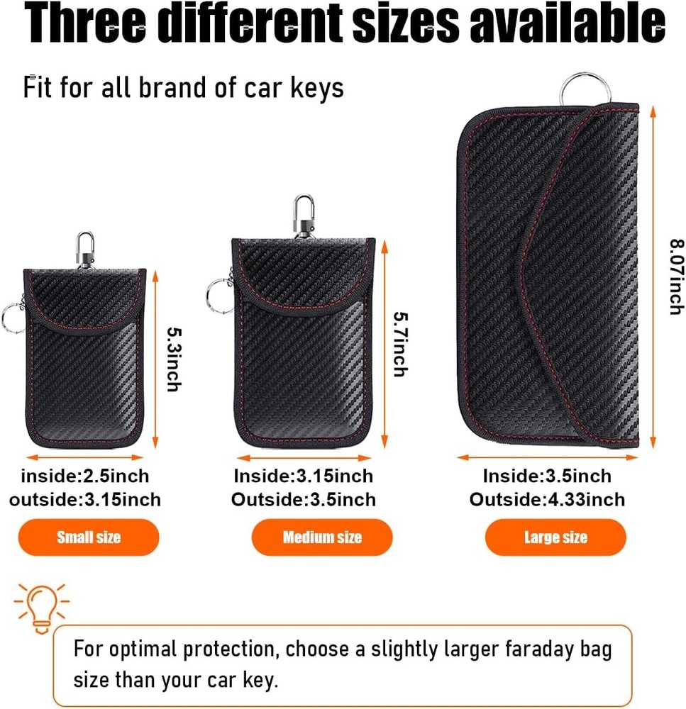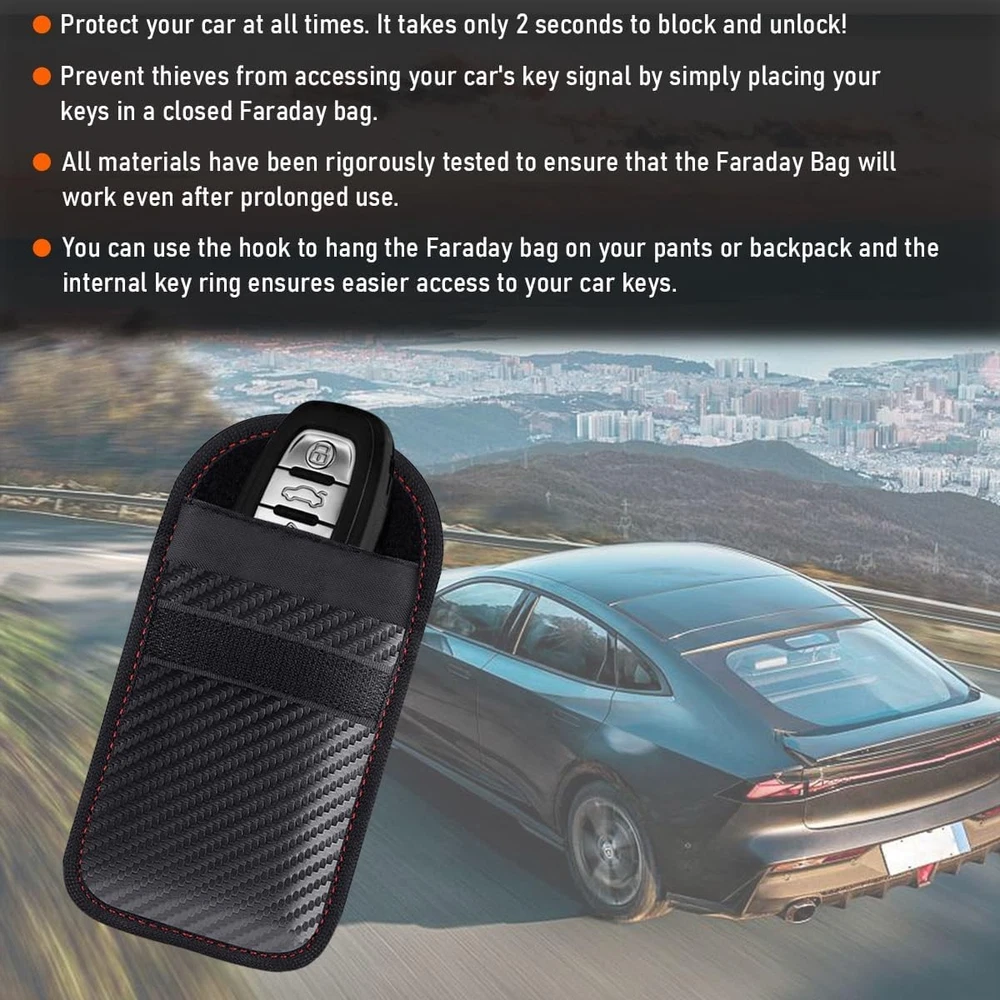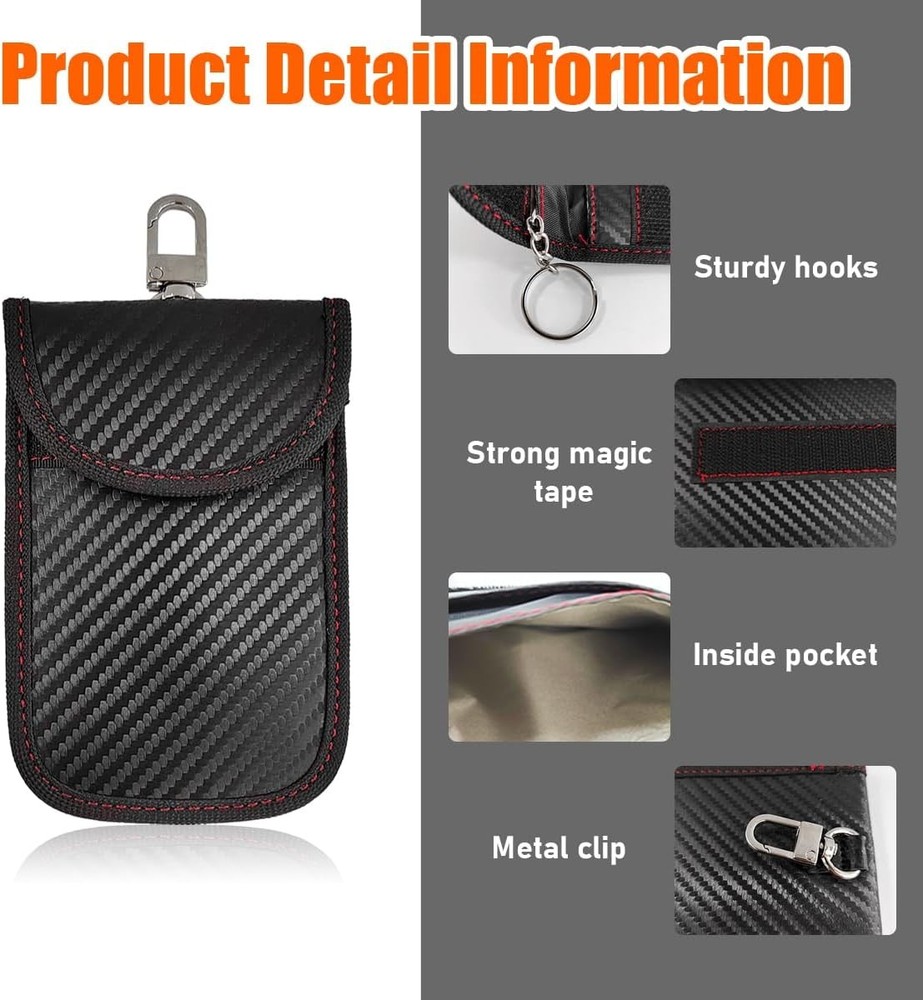 Free eBay listing template designed by dewiso.com Faraday Pouch for Car Keys, Signal Blocking RFID Faraday Bag Cage, Anti-Theft Key Fob Pouch Protector (Small) FREE AND FAST SHIPPING! About this item 【Practical Functions】: It can effectively block RFID, WIFI, Bluetooth, cell phone signals, 5G networks, GPS and other signals for car keys. It will make your car keys safe, prevent unauthorized access to your key fob's signals and protect your vehicle from potential theft or hacking attempts. 【Premium Material】: Its inner layer is made of double-layer premium RF shielding cloth, while the exterior is constructed from carbon fiber that is highly durable and waterproof. It can withstand daily wear and tear, and you don't need to worry about the pouch deteriorating or losing its effectiveness over time. 【Convenient Design】: With a lightweight design, a practical metal clip and various size options, it is portable and easy to carry around or hang on. Additionally, the sticky fastener ensures that the pouch can be securely attached to a variety of surfaces, providing convenient access to your keys while still maintaining protection. 【Stylish Appearance】: Thanks to the carbon fiber exterior layer, the Faraday key pouch features a stylish appearance. It ensures that you can carry your key fob with style, because not only does it provide top-notch protection for your car keys, but it also adds a touch of sophistication to your key storage solution. 【Wide Application】: With three size options (2.5" × 5.3", 3.2" × 5.7" and 3.5" × 8.1"), it offers versatility in accommodating different key fob sizes and shapes. You can choose the suitable size according to your needs. It can also hold your cell phones, ID cards, bank cards and other items. Show more Product We offer a 30-Day Return Policy on items which you are not completely satisfied with. You have the option for a full-refund or an exchange of the item. No returns are available on items shipped outside of the US . Shipping We offer Free Shipping to the US and ship within 2 business days of payment, usually sooner. We use UPS express shipping. That's why your products are usually delivered within 3 days . Contact We try our very best to make sure every customer is completely satisfied. If there's a problem , message us! We're happy to help. 24/7 live chat available.