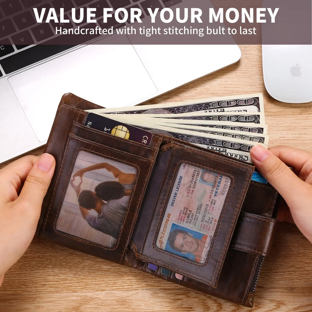 This wallet is sleek, practical, and secure! The genuine leather feels premium, and the RFID blocking keeps cards safe. Plenty of slots for cards, plus the zip coin compartment is handy. Fits perfectly in pockets—great for both casual and professional use. Love the mesh windows instead of plastic—no peeling or cracking. Super functional and stylish!