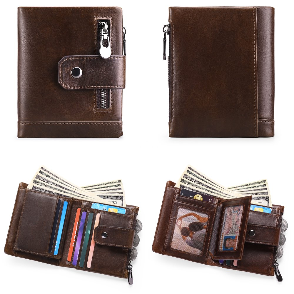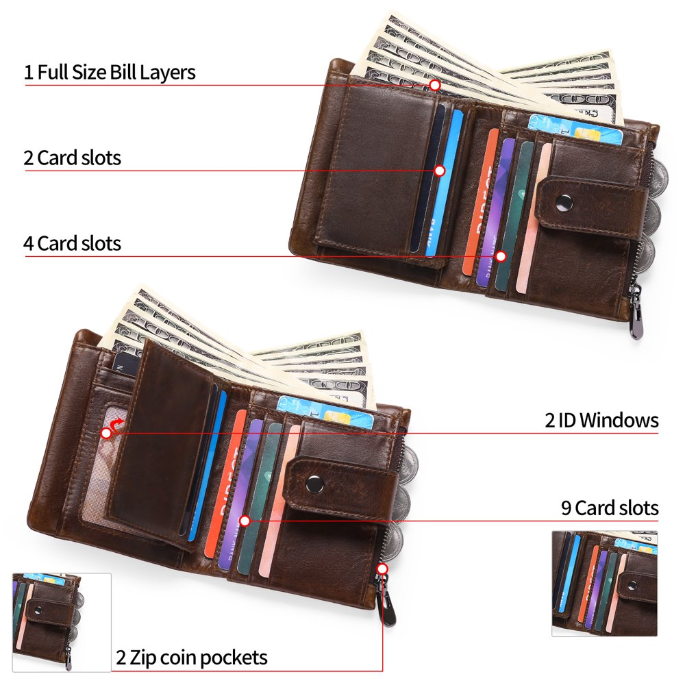 Product Details Product Dimensions(L x W x H):4.65x3.94x0.79 Inches Material:100% Genuine Leather Style:Casual & Business men's wallets,rfid wallet men,minimalist wallet for men,Leather Wallets,RFID Blocking Type:card holder for men / Leather Wallets for men / Card Wallets for men / credit card wallets for men / rfid wallet / How much capacity can you enjoy? 11 secure credit card slots to keep your card securely in place 2 practical and clear photo/document windows, the windows are mesh, not plastic, do not worry about the difficulty of getting in and out. 1 Bill compartment to keep your wallet organized 2 Coin compartments are used to store cash or receipts and coins, making your work and travel more convenient. Sendefn wallets for men:Our man's wallet will be packaged in beautiful gift boxes to give you more shopping experience and are the first choice gifts for family and friends Excellent quality. We manufacture our men's purses from genuine leather of the highest quality, which gives them a unique leather feel and smell. Sendefn wallets are well finished, such as clean and fine seams, perfectly matching card slots and more. High-quality leather ensures the longevity of our purses and fine workmanship ensures the aesthetics of our purses. Dimensions: The wallet is about 11.8 cm x 10 cm x 2 cm, weight: 0.1 kg, can be pushed into the front and back pockets, enough space for your valuables when you go out. Large Capacity: A reasonable and compact design allows you to easily transport and keep all the important cards in order. 11 Card slots for credit cards, meets your daily needs. 1 large compartment for all your ,2 ID window for driver's license or work/school ID and passport so you can quickly access them. 2 Zippered pockets for coins, keys or other small items. Makes your work and travel more convenient. RFID Blocking: This slim men's wallet is equipped with advanced RFID Secure technology, it is safer and protected from electronic pickpocketing, blocks the protection from RFID scanners and readers. Protects the valuable private information on RFID chips from unauthorized scans. The best gift idea for men can be used for work, travel, shopping, dates, holidays. This small leather purse is suitable for men, husbands, fathers, uncles, brothers, friends, colleagues, boss. It is the best choice for birthdays, anniversaries, Father's Day, Valentine's Day, Thanksgiving, Christmas and New Year. They are a great gift idea for travelers in your life