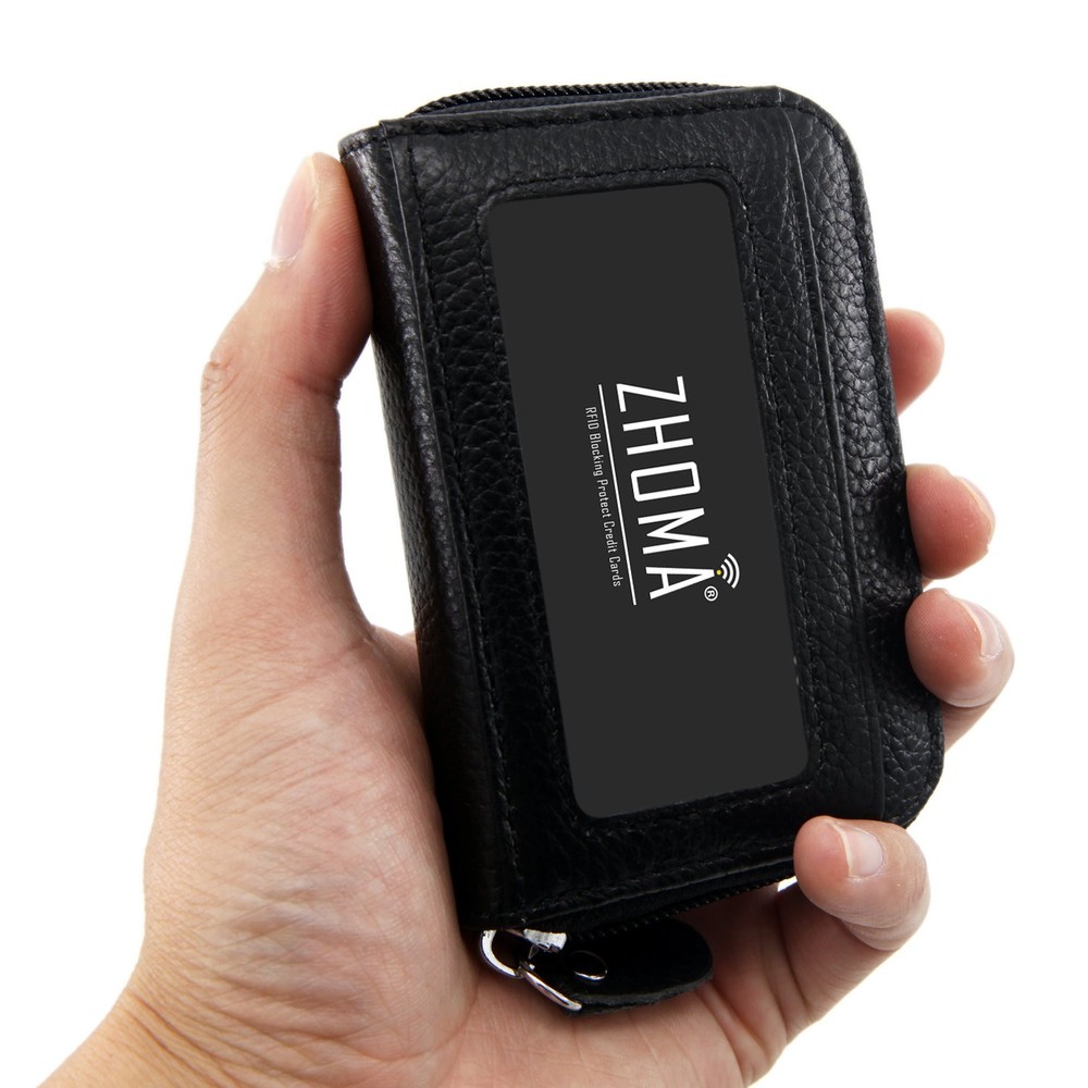 MADE FROM PREMUIM GENUINE LEATHER - Made of high quality genuine leather with fabric lining and soft hardware. RFID SAFETY & PRIVACY - Block RFID readers from scanning your credit cards, debit cards, banking information, smart cards, RFID driver's licenses and other RFID Cards. Provides peace of mind while traveling on vacation and surrounded by strangers in airports, crowded streets, and shopping. OUTSIDE ID WINDOW AND CARD SLOT - Lightweight with huge storage capacity, totally 11 RFID blocking card slots, you can put 1-2 cards into each card slot, also you can put notes, receipts or some folded cash into beside compartment . Great fit for business cards. Wallet Size: 4.5"x 3"x1". ZIP AROUND ACCORDION DESIGN - Zip around design keep your cards and money safe,Accordion style card slots provide better organized for your cards, easy in and out. Perfect Gift – These are perfect gift wallets for men & women given its sleek design, & smooth leather construction. They are high on utility, durability & have the best quality materials. It’s a perfect gifting item to your friends, family, near & dear ones. It fits as a perfect gift under all festivals & occasions like Father’s Day, Valentine’s Day, Christmas.