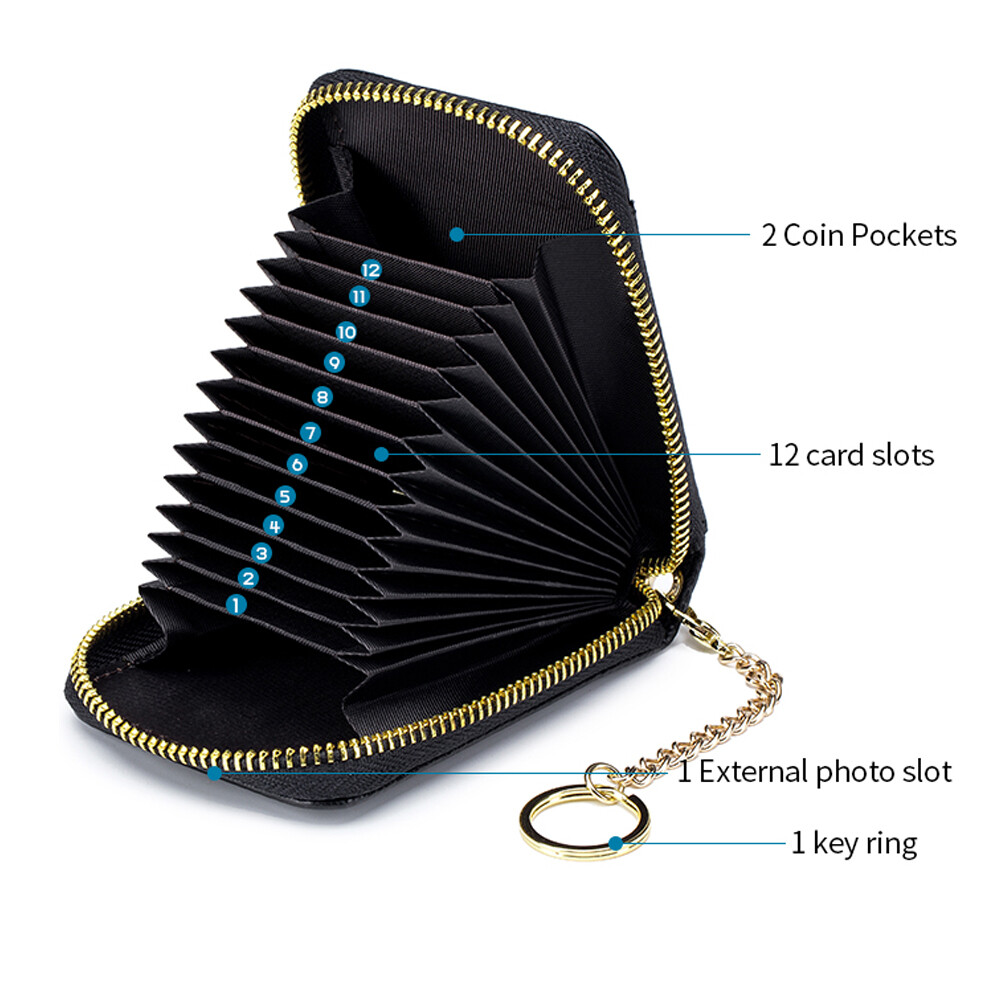 100% Brand New & High quality Zip Around, 12 Card Holders Shield electronic waves to improve safety Style: Zip Around Material: Leather Size: 11*7.5*2.5cm Package Included: 1 * RFID Blocking Leather Wallet