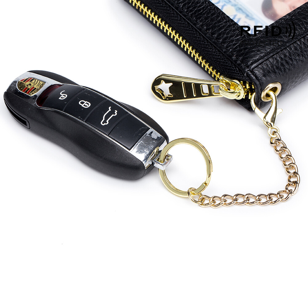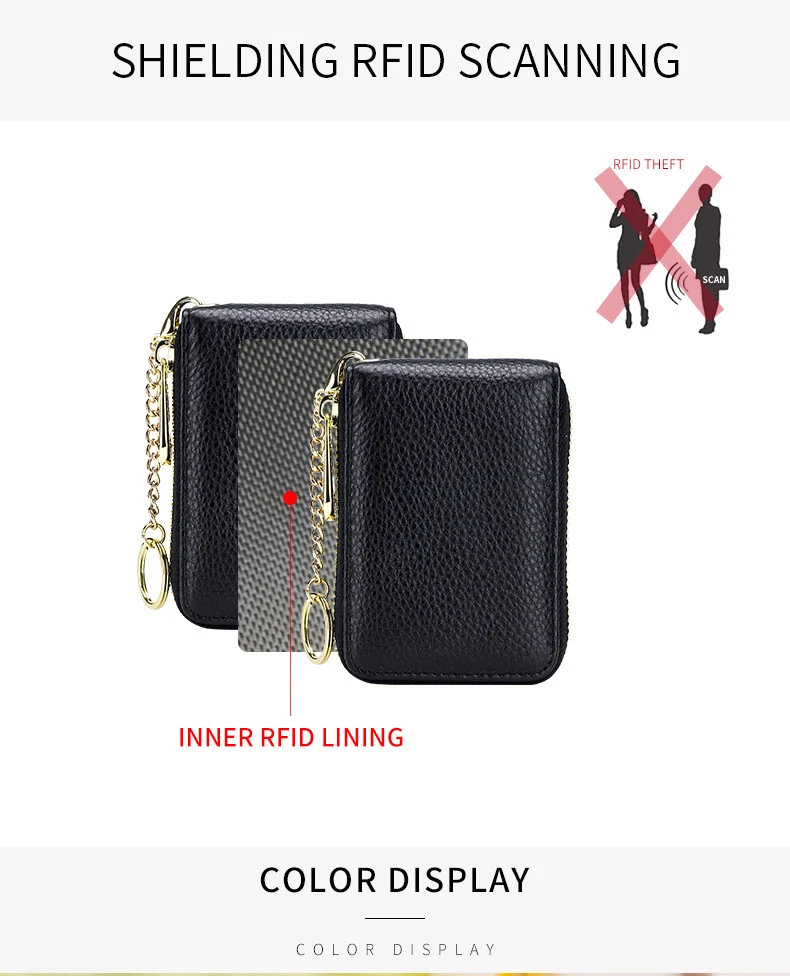 This RFID-blocking leather wallet is a game-changer! The compact zip-around design fits 12 cards securely while keeping them safe from electronic theft. The high-quality leather feels luxurious, and the keychain feature adds convenience. Perfect for men and women who want style, functionality, and peace of mind—definitely worth it!