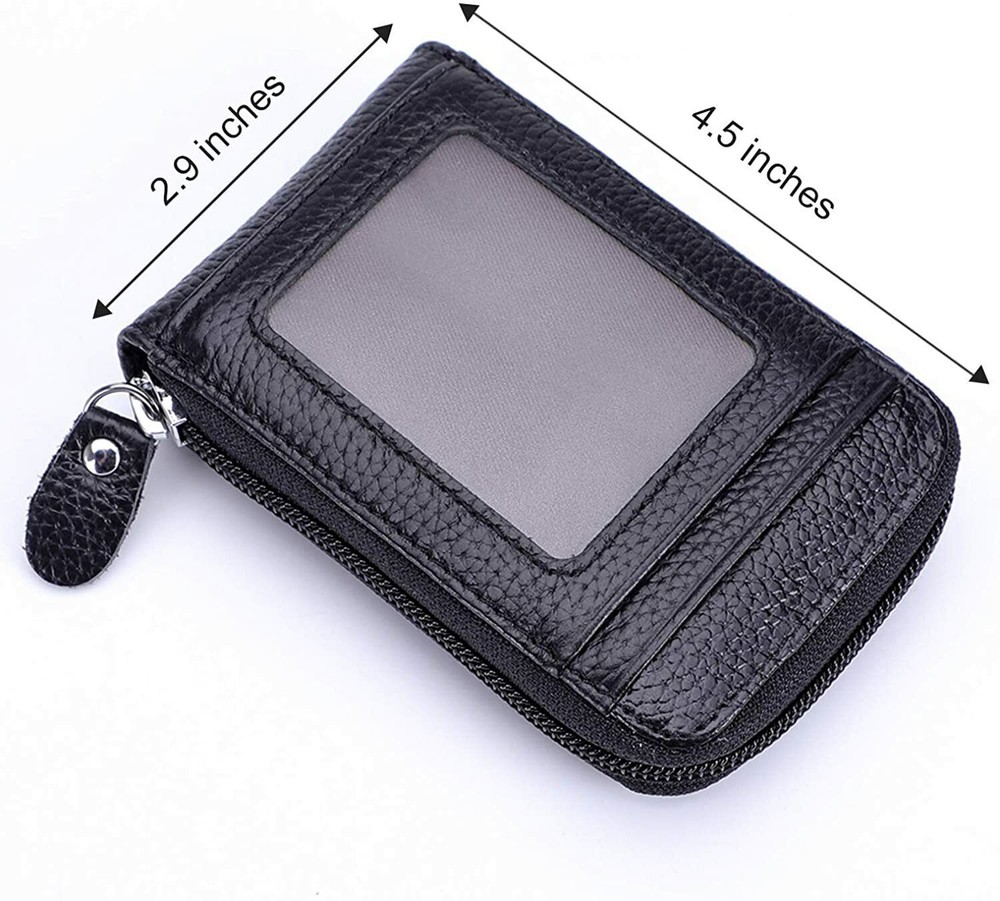 This RFID-blocking leather card case is a stylish and practical must-have! The compact yet spacious design fits all my cards, cash, and coins securely. The genuine leather feels premium, and the zipper keeps everything safe. Love the peace of mind knowing my cards are protected from RFID skimming—super convenient for travel. Perfect as a gift, too!