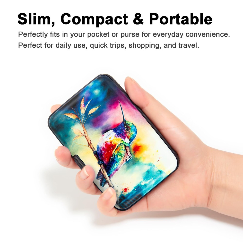 Description Elevate Your Everyday with 's Aluminum Credit Card Wallet Holder Discover the perfect blend of style and security with our compact, eco-friendly wallet. Engineered for modern life, it combines advanced RFID protection with a sleek, aluminum design, ensuring your data stays safe while you stay stylish. Compact for Comfort: At just 4.2 x 2.83 x 0.7 inches and weighing only 0.17b, it fits easily into any pocket or purse. Smooth, rounded corners enhance the feel and ease of use. Efficient Organization: With 7 expandable slots, it holds up to 10 credit cards or over 20 business cards, making organization effortless and stylish. Unique and Personal: Reflect your style with a range of artistic designs, from classic to contemporary. Each wallet is a statement of individuality. The Ideal Gift: Perfect for Valentine's Day, birthdays, Mother's Day, and more, this wallet is an excellent choice for women and girls who appreciate elegance and functionality. Join the Sustainable Journey: With , step into a world where luxury meets eco-consciousness. Our commitment to the environment is as strong as our commitment to quality. Experience the difference – where every detail matters. Ultimate RFID Protection: This sleek Aluminum Credit Card Wallet Holder, crafted with new eco-friendly ABS plastic, is your perfect business case solution. It offers advanced RFID blocking to safeguard your data, blending metal durability with environmental responsibility. Small, Slim, Compact Wallet: Measuring 4.2 x 2.83 x 0.7 inches and weighing just 0.17b, this lightweight wallet, with its smooth, rounded corners, easily fits into front pockets or purses. Perfect for everyday use, quick trips, shopping, and travel. Efficient Card Organizer: Our wallet features 7 accordion-style slots, securely organizing up to 10 credit cards, IDs, or driver's licenses, and more than 20 business cards. Artistic and Personalized: Each wallet showcases a unique artistic design, ranging from classic artworks to contemporary patterns, allowing you to express your personal style. The Ultimate Gift Choice: Delightfully cute and versatile, this wallet is an ideal gift for women, ladies, and girls. Perfect for any occasion, from Valentine's Day and birthdays to Mother's Day, Father's Day, Christmas, and Thanksgiving, it’s a thoughtful way to show your appreciation and love.