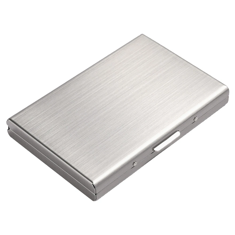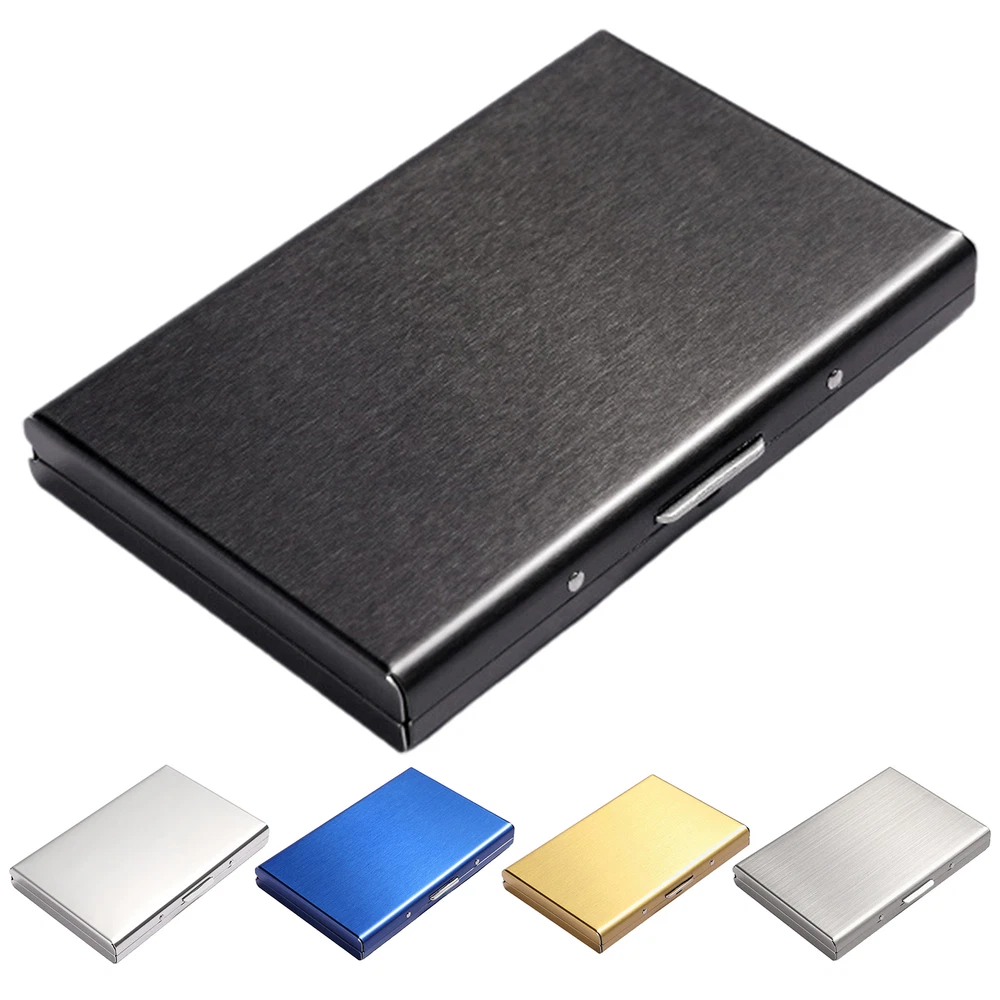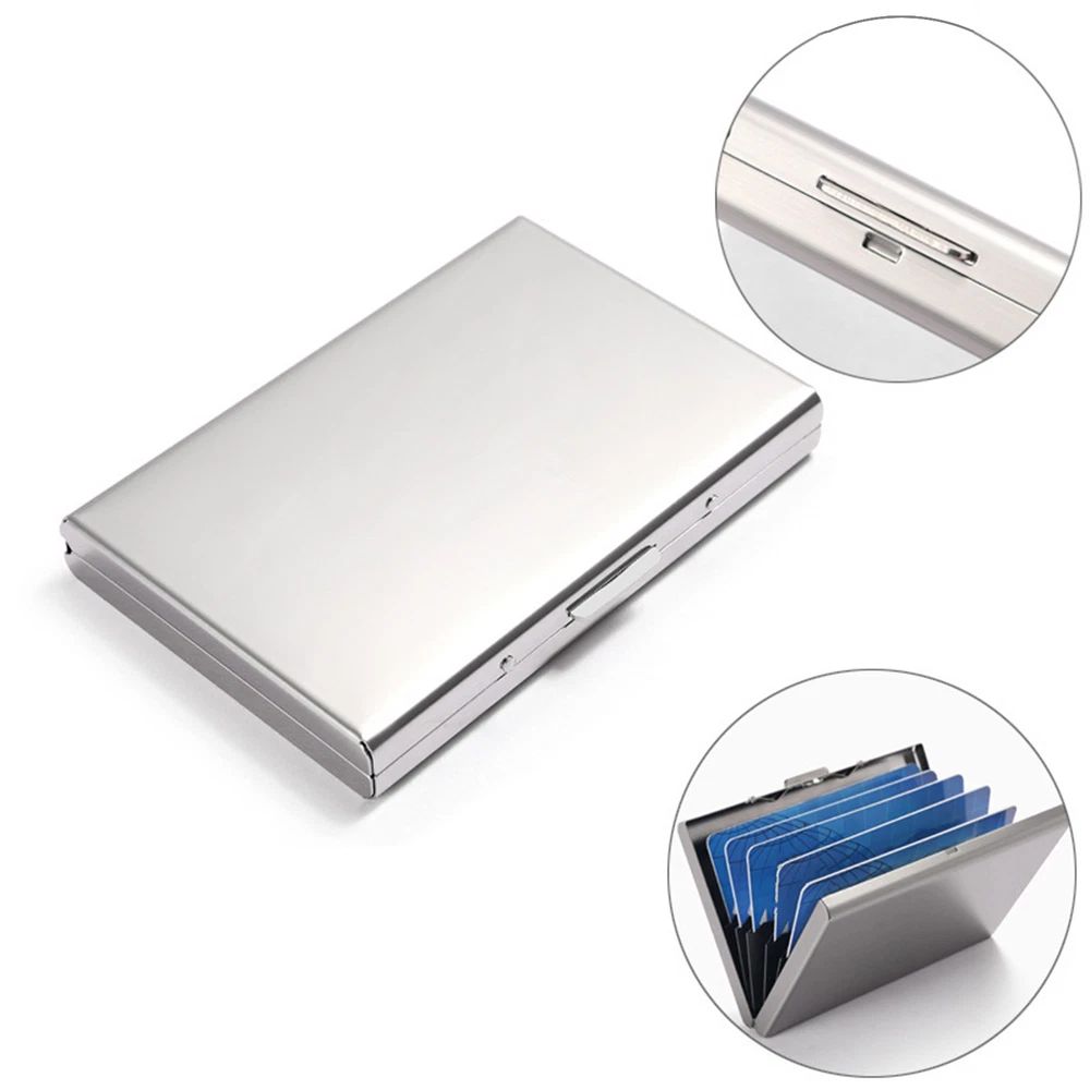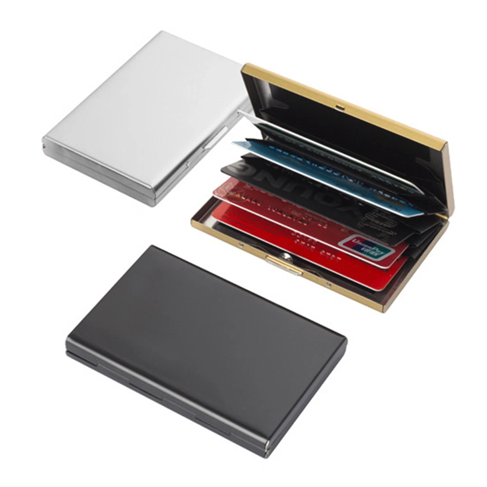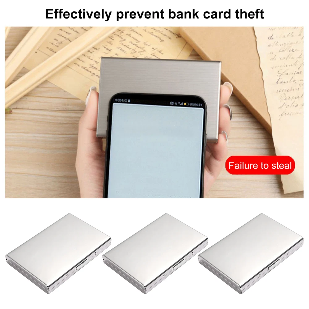 This compact metal wallet is a sleek and practical way to keep cards safe from RFID skimming. Holds up to 12 cards in six slots while blocking unwanted scans—perfect for travel or daily use. The sturdy metal clip and ABS buckle ensure long-lasting protection, and its slim profile fits easily in pockets or bags. A must-have for security and convenience!