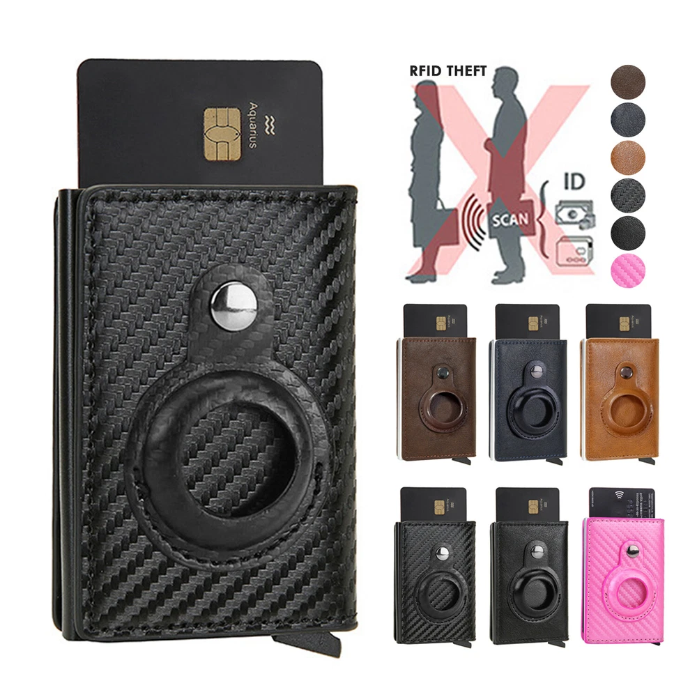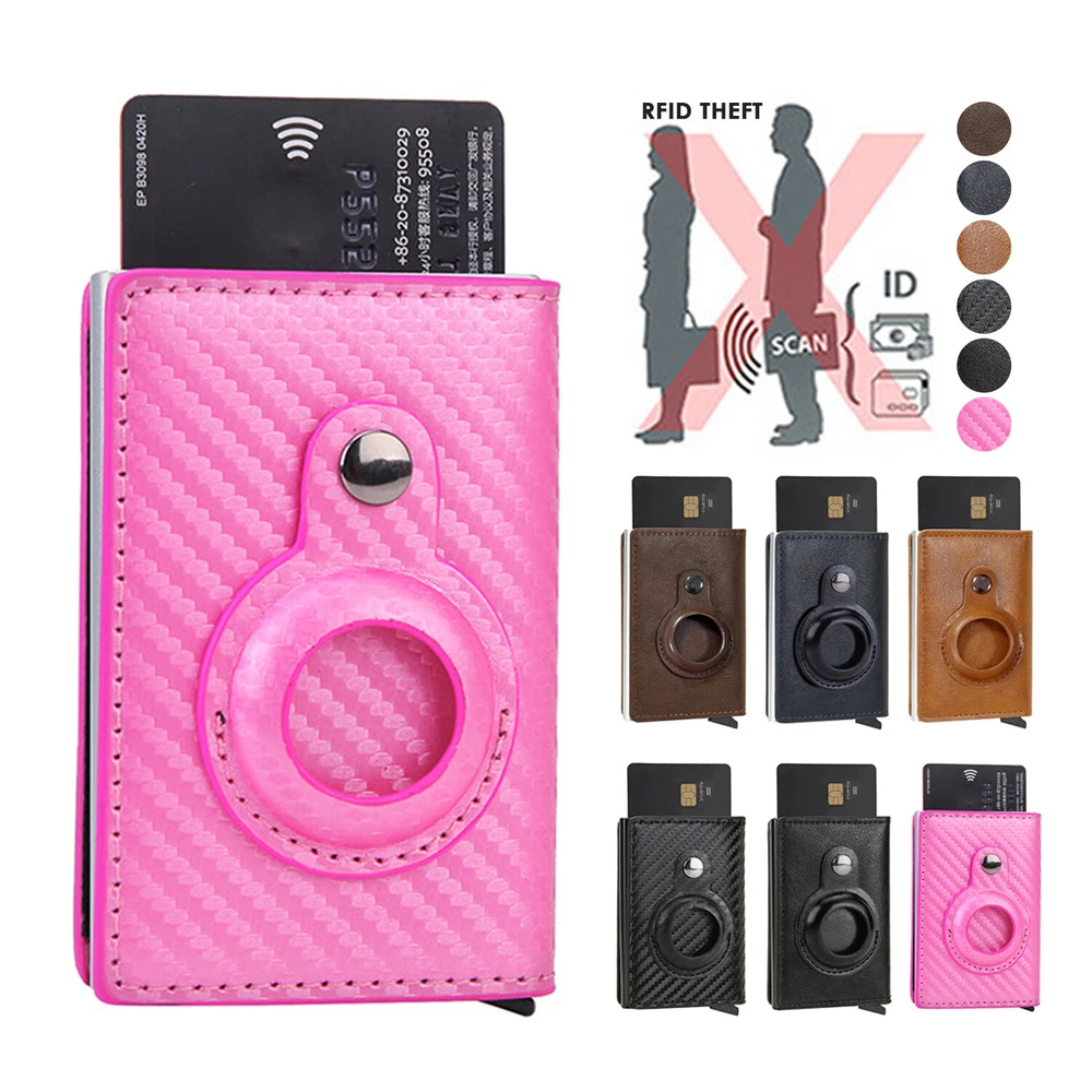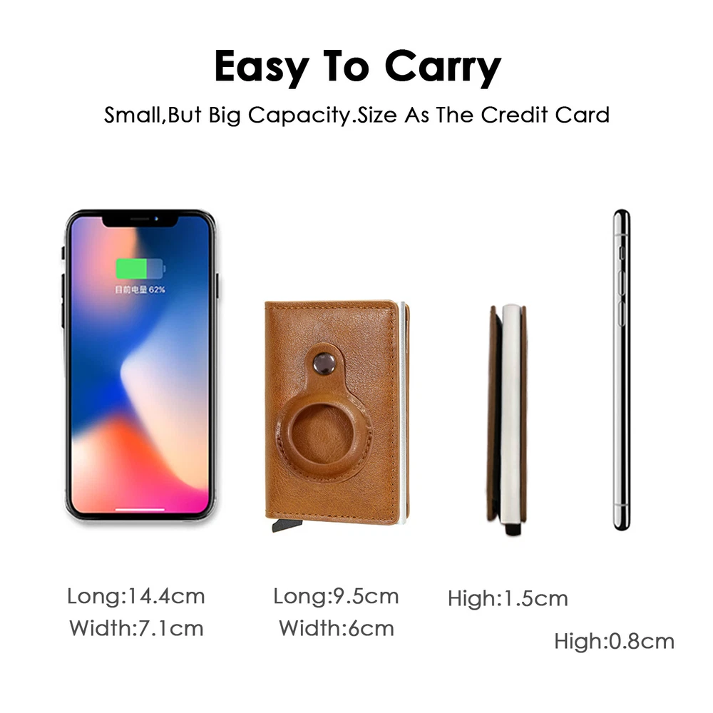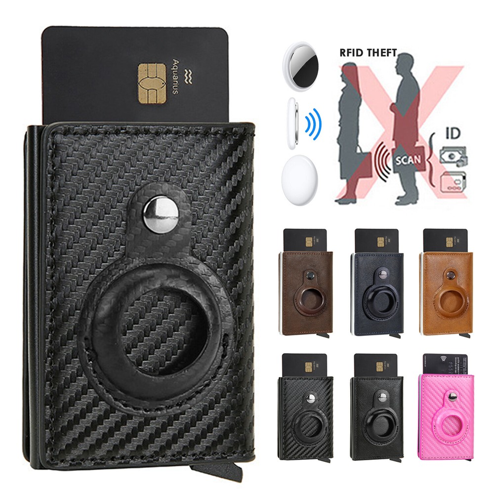Airtag Wallet Case Leather RFID Credit Card Holder Magnetic Air Tag Cover [Airtags Slot]-Aiuwo airTag wallet has a built-in pocket, which can tightly fix your Apple tracker in place, which is convenient and beautiful. Its open design also provides excellent sound transmission and good signal strength.Securely protect AIRTAG.Our Airtag holder does not come with an Apple Airtag. [Quick Card Retrieval]-Using the latest ergonomic design.Easily access the card with just one finger.Simple design and smooth pop-up card function can provide excellent functions, secure card storage space. [Block Credit Card Theft]-Block protection design to keep your private information and credit cards away from thieves’ scanning equipment to protect your private property. [Minimalist and Smart]-Credit card holder package supports RFID cards and various types of cards. It can hold up to 8 cards, which is very suitable for business cards, credit cards, driving licenses, etc. It is simple and stylish and easy to carry. Colors: Back, Blue, Pnk, Coffee, Brown, Carbon fiber Black ( optional ) Package Include: 1X Airtag Wallet Case Leather RFID Credit Card Holder
