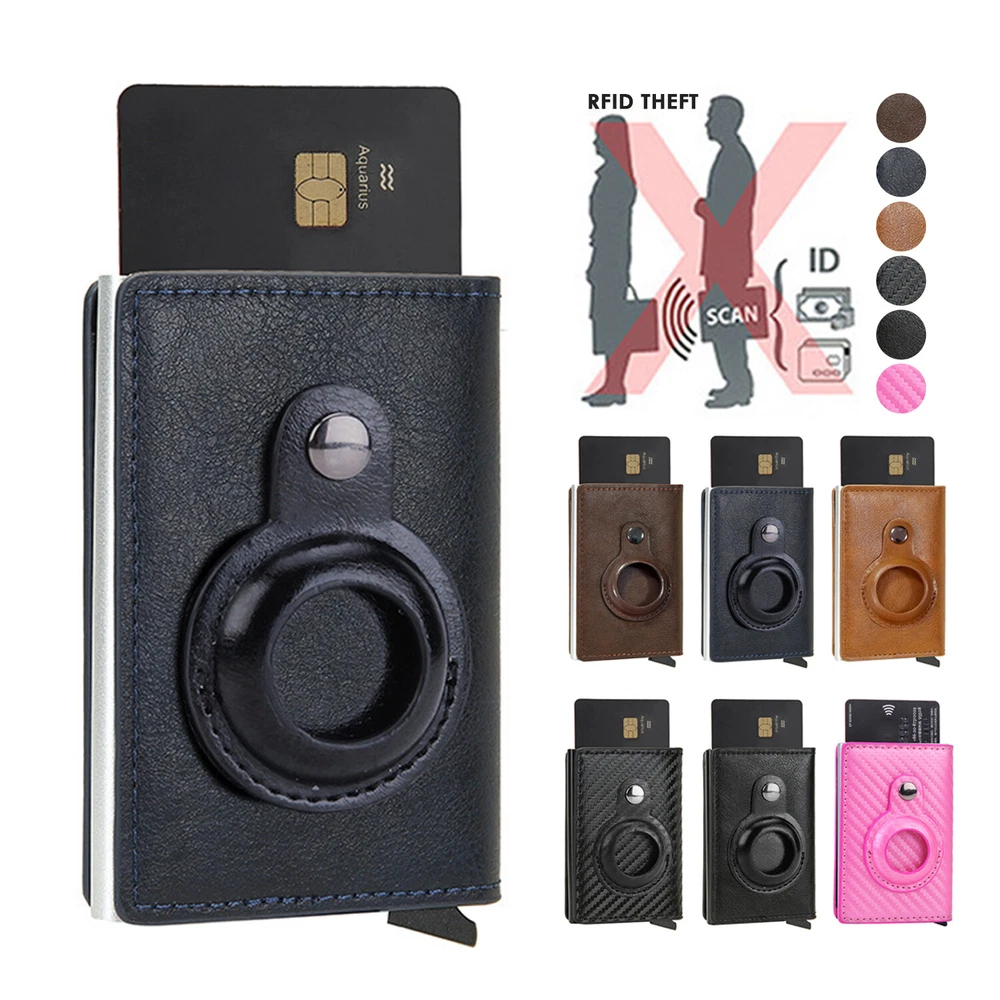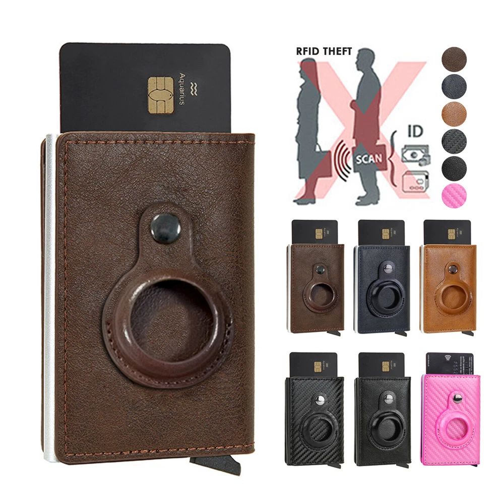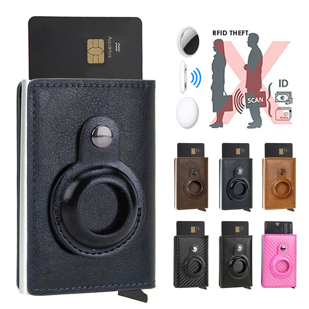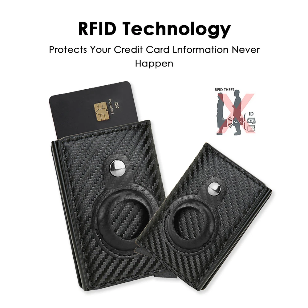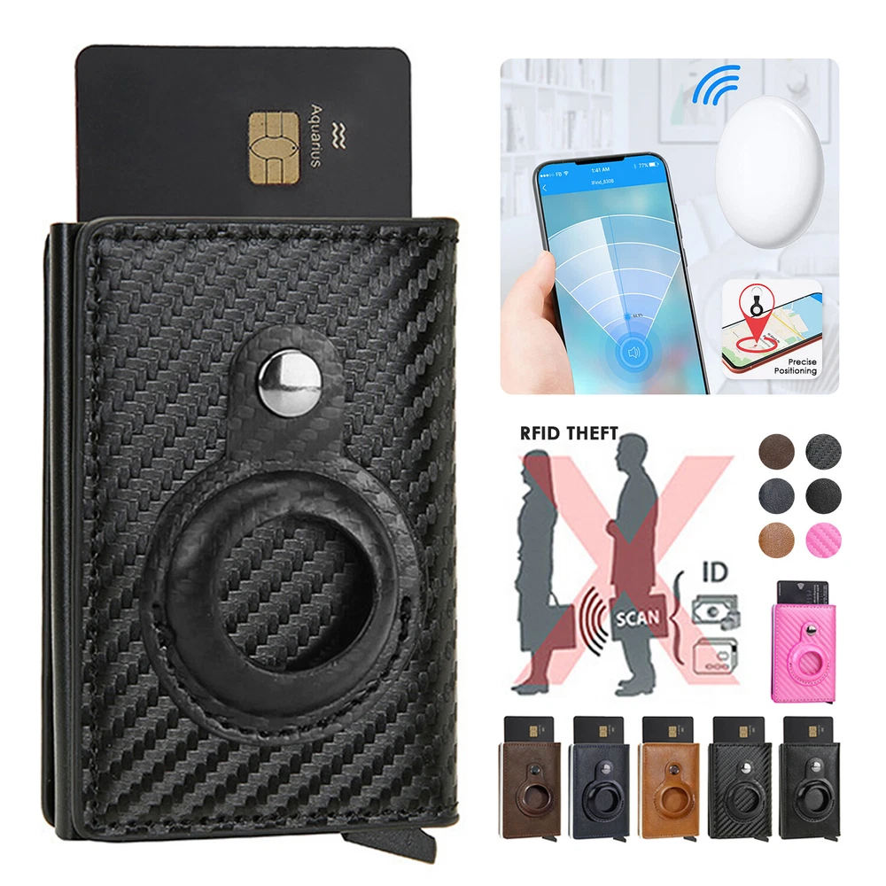 Airtag Wallet Case Leather RFID Credit Card Holder Magnetic Air Tag Cover [Airtags Slot]-Aiuwo airTag wallet has a built-in pocket, which can tightly fix your Apple tracker in place, which is convenient and beautiful. Its open design also provides excellent sound transmission and good signal strength.Securely protect AIRTAG.Our Airtag holder does not come with an Apple Airtag. [Quick Card Retrieval]-Using the latest ergonomic design.Easily access the card with just one finger.Simple design and smooth pop-up card function can provide excellent functions, secure card storage space. [Block Credit Card Theft]-Block protection design to keep your private information and credit cards away from thieves’ scanning equipment to protect your private property. [Minimalist and Smart]-Credit card holder package supports RFID cards and various types of cards. It can hold up to 8 cards, which is very suitable for business cards, credit cards, driving licenses, etc. It is simple and stylish and easy to carry. Colors: Back, Blue, Pnk, Coffee, Brown, Carbon fiber Black ( optional ) Package Include: 1X Airtag Wallet Case Leather RFID Credit Card Holder