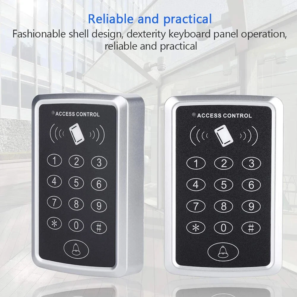 125KHz RFID Access Control Keypad Outdoor Rainproof Cover EM Card Reader 10pcs Keyfobs For Door Access Control System Product Features Classical standalone access control adopts high quality plastic material. Based on low power consumption and low cost. Suitable for household, office and department. * High quality and high security * Sensitively and response quickly * Support 1000 standard users * Support card, password, password plus card to open the door * Has a door bell button * Classical Appearance with useful function * Doesn't need to connect on the computer, can works alone * Application: Home/ hotel/ office/ department / apartment etc Support 1000 standard users 3 kinds of unlocking methods Precision internal component Fashionable shell design Product details Suitable for home, office and other places
