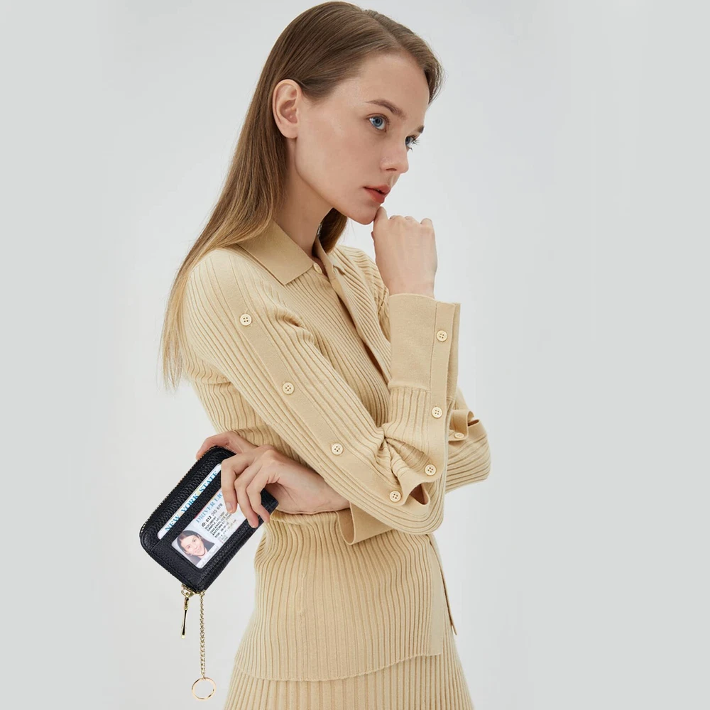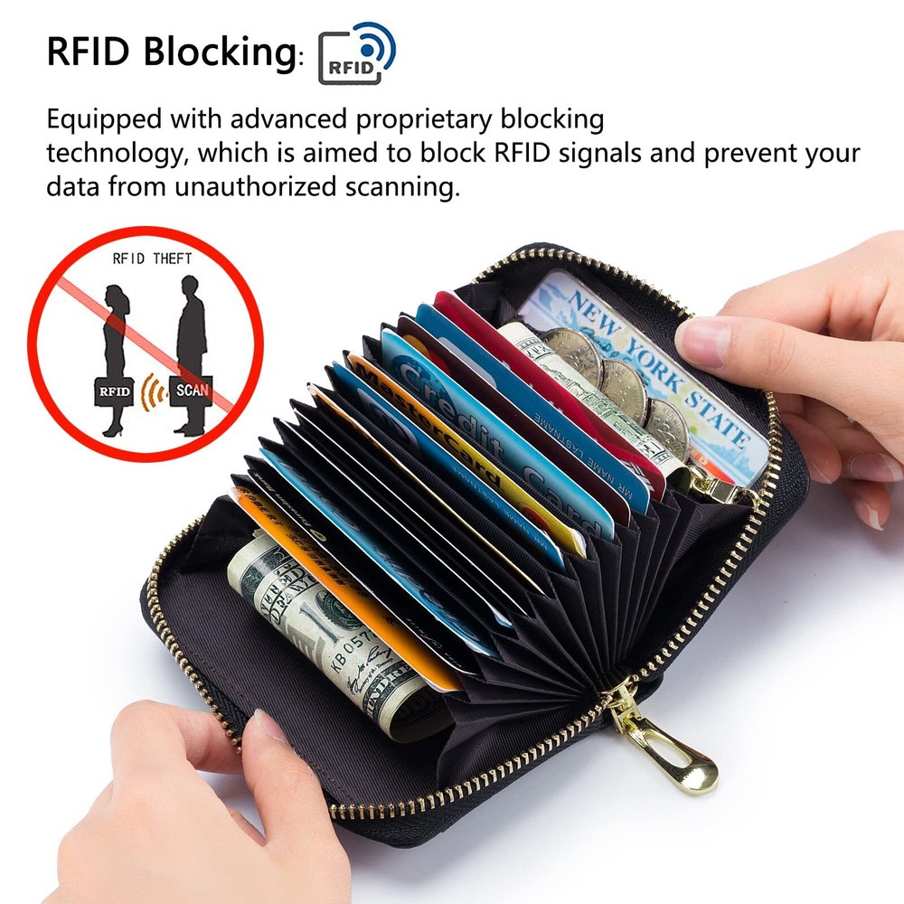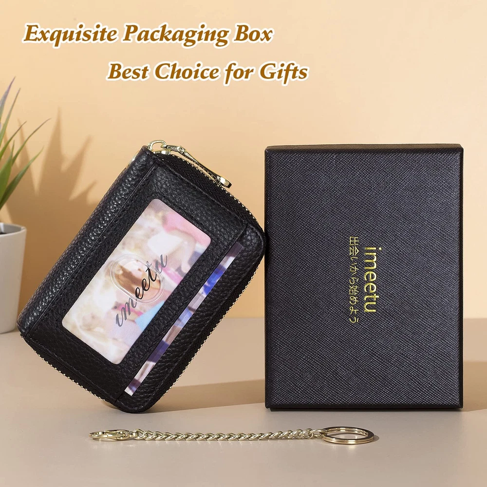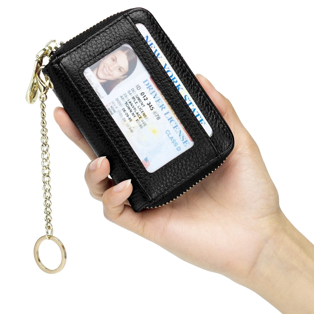 RFID Credit Card Wallet, Genuine Leather Zipper Card Case Holder with Removable Keychain Description and features Multifunctional Keychain Card Wallet: Made of genuine leather, soft and durable. Designed with a detachable keychain for your house or car keys. And the external clear ID window is convenient to use. Perfect Size to Organize Almost Everything: 4.3 x 3 x 1.2 inches. There are 12 card slots for at least 12 cards, 2 wide slots for bills, folded cash, receipts, and a tiny zipper pocket for coins. The sturdy keychain can attach your keys firmly. RFID Blocking and Special Design for You: Equipped with advanced proprietary blocking technology, which aims to protect your personal information on the cards from unauthorized scanning. The classic with various colors fits any occasion and easily matches your outfit. Ideal Gifts with Exquisite Packing Box: We designed it carefully for you, and you selected it carefully for your friends or family. It must be a wonderful gift on Thanksgiving Day, New Year's, Birthday, and Christmas. Happy Shopping Service: is striving to offer high-quality products and a range of professional and efficient after-sales service to our broad customers. , you meet ! Return Policy ⦿ All our products come with a 30-Day Return Policy. If you would like to return your item and you are within 30 days of the purchase, and it is still in its original condition, you can return the item by contacting us through eBay messaging. ⦿ If you are not 100% satisfied, please let us know the Detailed Problem,We will give you a 100% satisfactory solution ⦿ If you received an incorrect, damaged, defective, or item not as described, contact us for a partial/full refund or replacement on our cost. ⦿ Free Shipping and Free Return 30-Days Money Back Guarantee. ☎ For all returned products, buyers MUST contact us for the returning address. Shipping ⦿ We do not ship to a different address. we will ship to the address you provide on the ebay only. Please check your address before purchase. ⦿ It should take 2-4 business days for the product to reach your destination. ⦿ If the product doesn't reach your destination within the time limit, please give it an additional 1-2 business days in case of postal delays and/or possible technical issues. ⦿ We use a selection of shipping services such as UPS, FedEx, USPS etc. ⦿ We ship only to the 48 contiguous states of America. We do not ship to Hawaii, Alaska, US Protectorates, APO/FPO addresses. Local pickups are not offered. ☎ If it takes any longer than that, please do not hesitate to contact us to resolve the issues. Contact us ☎ Please contact us via eBay message. And your message will be replied within 1 business days. For any queries, please feel free to contact us, we will get back to you as quickly as possible. Customer 100% satisfaction is our first priority and goal. We are always working hard for maintain high standards of excellence and resolve your problem in best way. So your POSITIVE FEEDBACK is very important. If you have any problem of the item, please feel free to let us know before leaving your feedback. We will try our best to solve your problem. About us We are here to give you quality products, competitive pricing and amazing service in order to make sure you get the best deal online, Thank you for your business and the opportunity to serve you.