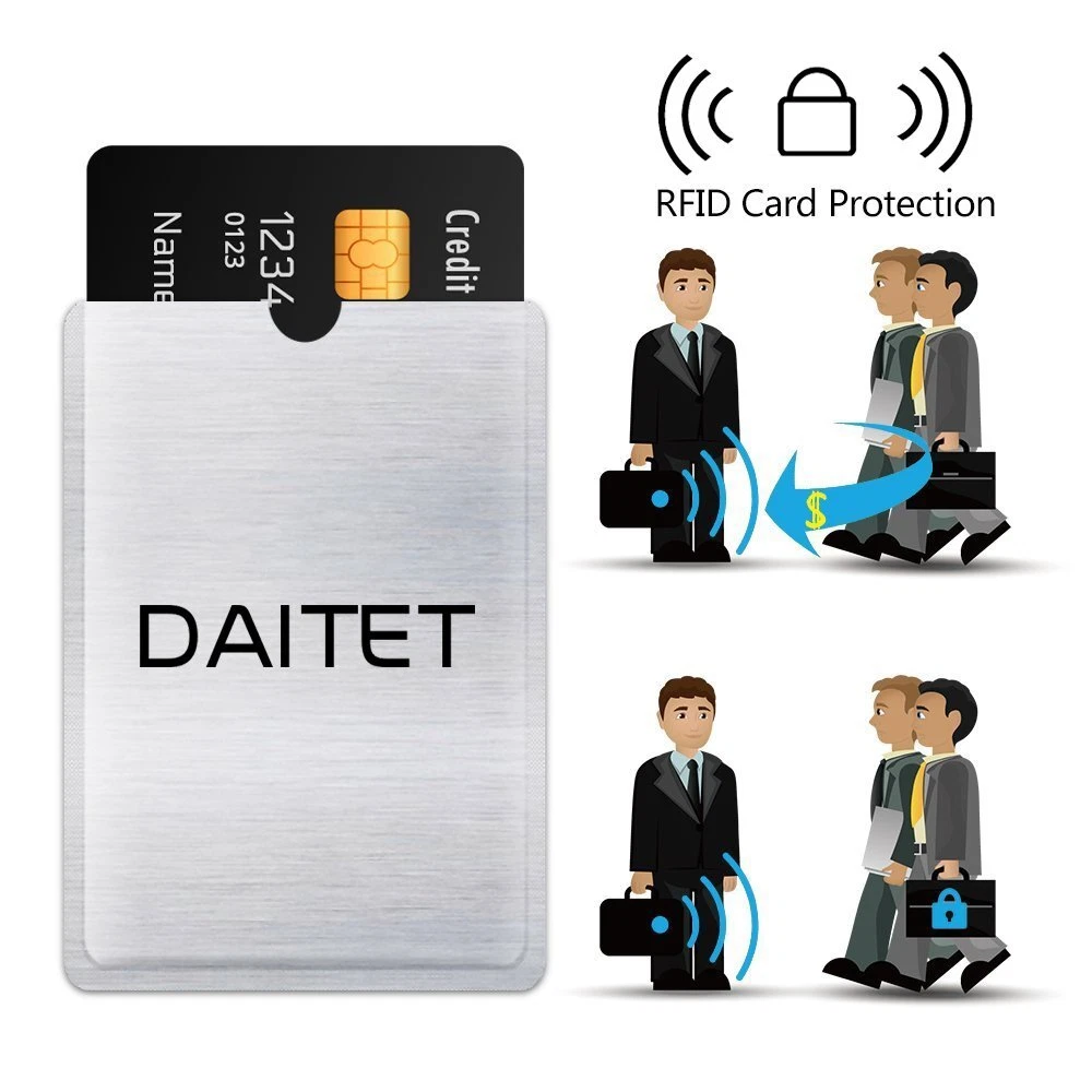 ═════════════════════ DAY TIP RFID BLOCKING SLEEVES BEST TRAVEL ACCESSORIES ═════════════════════ ▶SPECIFICATION Weight: 1.41ounces Product dimensions: Credit Card Holders: 3.5" L x 2.5" W & Passport Protectors: 5.3" L x 4.1" W Color: Silver ▶SECURE PROTECTION Nowadays, security is more and more important in all aspects. Fortunately, there is a simple solution. The RFID Blocking Function, blocking all RFID scanners and readers, Stop Electronic Pick pocketing for personal information. Protect all your Credit & Debit Cards, ID Cards, passports, and other device. ▶PREMIUM QUALITY and FASHIONABLE DESIGN FIPS 201 Approved by the US Government. Only high-grade material used. Durable, ultra-lightweight, water & tear resistant. Sleek profile, Slim smart design in a stylish matte silver finish, which avoids taking up precious space in your moeny belt or fanny pack. ▶RELIABLE and FLEXIBLE STRUCTURE Protect yourself from data thieves who skim & steal your personal financial information within seconds. Avoid wasting hours of cancelling credit cards and anxiety over identity theft. RFID blocking sleeves engineered to allow you to freely slip your card in & out of the sleeve with ease. Perfect for traveling & everyday use. ▶EXTRA PRACTICAL, EXTRA DURABLE A great reliable attendant for travel keeps the important info right within reach. Suitable for husbands, wives, dads, moms, students, travelers & outdoor enthusiasts. ═══════════════════════════ 100% SATISFACTION WARRANTY ═════════════════════════════ If for any reason you are not satisfied with our product you will receive a full refund no questions asked and hassle free. Don't hesitate! You deserve to travel with a peace of mind and elegant posture! Designed specifically for Credit Cards. Slim, light, thin, waterproof and custom fit to any wallet or purse Metal shielding blocking RFID UHF 860~960MHz and HF 13.56MHz frequencies Fit one standard sized credit card and soft on the inside so it will not damage your Credit Card. Sleeve is made from tear-resistant construction and RFID blocking material inside Money back guarantee CAN BE CUSTOM FIT TO ANY WALLET