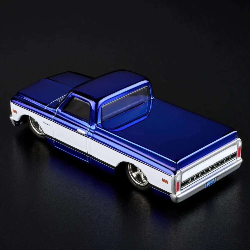 CONFIRMED PRE-ORDER **SEE BELOW FOR MORE INFORMATION** RLC Exclusive 1969 Chevy C-10 The “C” might have stood for “conventional” in the 60s, but this second-generation pickup truck is anything but. Our replica of the 1969 Chevy C-10 sports a redesigned grille with round headlights in square frames. Its silver VUM wheels enhance its classic look, and our adjustable suspension puts you in control of its display. Crank it up for street stance, or dial it down for slammed style. Features: Adjustable suspension Body Color: Spectraflame navy blue Body Type: ZAMAC Wheels: Real Riders 5-spoke wheels Base: Full-metal, chrome-plated chassis Window Color: Medium smoke-tinted Interior Color: Black Scale: 1:64 SKU#: HWF22 Packaged in a slip case with clear inner blister. ALL SALES ARE FINAL Will Not Accept the Following: Cancellations* Returns* Refund* *Cancellation Requests on Pre-Orders will result in a 25% charge