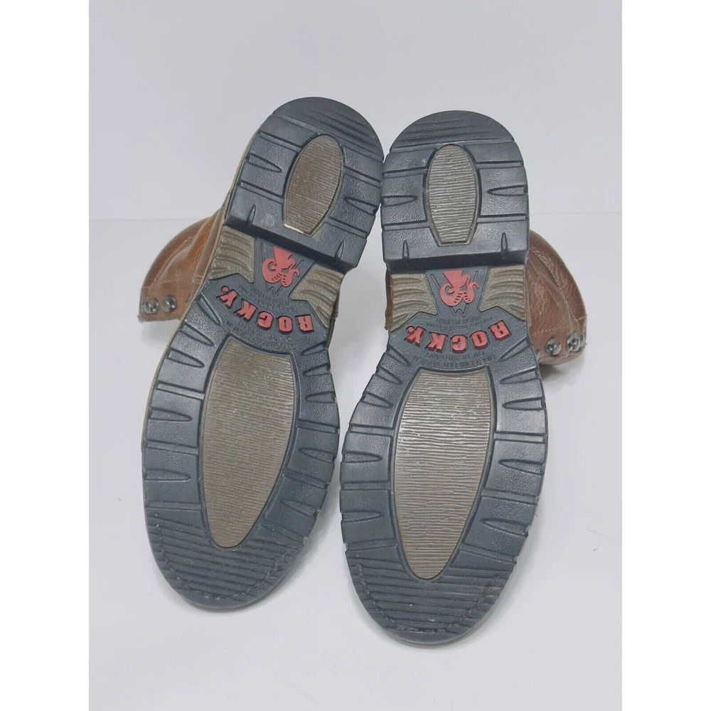 Get ready to ride with the Rocky Original Ride Lacer Waterproof Western Boots 2723! These men's boots are designed for the true cowboy in you, featuring a solid pattern and round toe shape. The lace-up closure allows for a snug and adjustable fit, while the waterproof leather material ensures your feet stay dry in any condition. With arch support, slip-resistant soles, and lightweight comfort, these boots are perfect for all-day wear. The TAN PITSTOP color and Western/Cowboy theme add a touch of rugged style to any outfit. Available in size 8.5, these Rocky boots are sure to become your go-to footwear for any adventure.