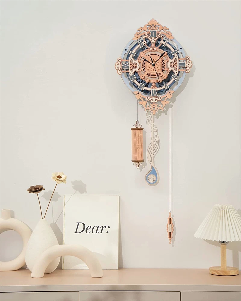 ROKR 3D Puzzle Wall Quartz Clock Wooden Gift For Kids Adults Mechanical Design Product Description: ROKR 3D Puzzles for Adults Vintage Wooden Pendulum Clock Kits 12" Mechanical Building Model Kits DIY Wall Clock Hobbies for Adults Home Decor Gifts for Teens Characteristics : Product Name:Owl Clock Wooden 3D Puzzle Brand: ROKR Theme: Pendulum Clock Material: Wood The Number of Pieces: 231 pcs Age: 14+ Finished Size: 11.73 x 4.21 x 25.35 inch ROKR Romantic Note· Wall Clock is a mechanical 3D puzzle clock combined with decorative charm and pratical functions. It restores vintage charm with music note-shaped pendulum and stylish clock dial. Once completed, it will be pleasure to eyes. Perfect gift for boys and girls, dad and mom. Engaging Model Kits for Teens/Adults Putting a mechanism together is both challenging and rewarding. Hours of carefree aseembling withwith family and kids, you will savor the sense of fulfillment once it's finished . Pieces: 231 pcs Estimate Time: 5.5 h Assembled Size: 11.5x4x25 in Power: Gravity/AA Battery (not included) Vintage Pendulum Clock The model kits adopts classic pendulum structure with escapement wheel and escapement fork. You need to add weights in the heavy bob before the pendulum can swing (up to 4 hours). Although the pendulum is only decorative instead of telling time, its swings restore the charm of vintage clock. Creative Gift for boys, girls, mom, dad, husband, wife Stunning Decor for bedroom, living room, office Hobby Craft Kits for adults, teems, DIY lovers Everythign You Need The package includes every accessories your need: Wood sheets English instruction Clock movement (battery not included) Hook set Sand paper Step-by-step Instruction Every step is shown in illustrations. Very easy to follow. If you have any assembly question, feel free to tell us. Slient Quartz Movement Quartz Movement is accuatre and sient, which make the model a practical time indicator. (Battery is not included due to international shipping policy.) Package includes: 1 x 3D Wooden Puzzle Note: 1.Small parts should be kept away from children under 3 years old to prevent accidental ingestion, be careful of sharp parts! 2.If you have any questions about our products, please feel free to contact us, our customer service will help you solve the problem as soon as possible, thank you for your understanding.