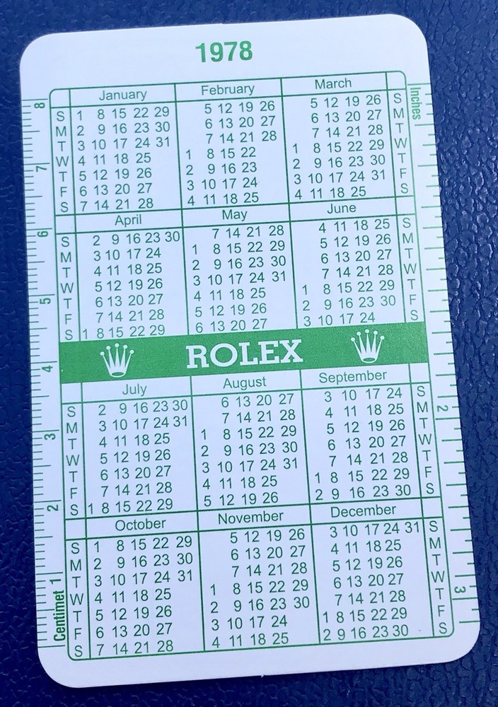 Rolex Genuine Calendar Vintage GREEN VERSION VERY RARE Please Note: THIS IS NOT A WATCH Items might differ slightly from the photos due to storage / handling Measure: 9,5 x 6,5 cm Private Collection ORIGINAL ---------------------------------------------- These products are being sold for Collection purposes ONLY. I am Member of WTA since 1998 I am not affiliated with Rolex . I am not an official Rolex Dealer Questions : Please ask us all the questions you have before bidding. ------------------------------------------------- We sell products that might have been used or otherwise known as "take-offs". Some parts are like new or very gently used, and others show signs of wear and may need to be cleaned or polished. Please see pictures for more details. We try to take pictures of any defects the item may have. If you have any additional questions, feel free to ask us and we will get back to you as soon as possible. Customer Service If for any reason you have an issue with our product, please choose “Contact Seller” via eBay before leaving negative feedback or opening a case. We promise to resolve any issues as soon as possible. Positive feedback and 5-star seller ratings are extremely important to us as we are looking to provide outstanding products and services to our customers. Returns We reserve the right to charge a 10% restocking fee on all returns. Shipping and handling charges are not refundable. The buyer is responsible for the return shipping fee. Shipping We typically ship orders Monday through Friday (except for Holidays) within 3 business days of receipt of cleared payment. Please make sure your shipping address is correct before sending payment. All orders are shipped with a tracking number. You will receive and email with it as soon as your order ships. Please allow a few extra days for delivery if there is a weather problem. IMPORTANT NOTE FOR INTERNATIONAL BUYERS All our goods are shipped from Spain, but we are a UK based eBay shop, sales to the European community might be subject to VAT. Please see the link below: VAT on eBay purchases for EU buyers | eBay.com BUYERS OUTSIDE THE EUROPEAN UNION: The tariffs, duties and import taxes are not included in item price or shipping charges. These charges are the responsibility of the buyer. Refer to the customs authorities of your country to inquire about these costs before bidding on an item or buying it. These fees are usually charged by the carrier or when the buyer takes the item and should not be confused with additional shipping costs.