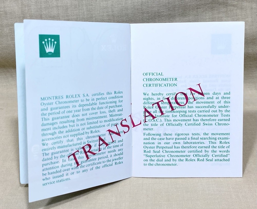 Rolex Genuine Booklet Translation Year: 1992 Languages: English, German, Italian, Portuguese, Spanish, Danish, Dutch, Russian, Japanese*, Chinese*, Arabic* (Languages with *: I am not sure if these are the correct languages, I can send pictures if requested) Ref: 565.00.400.11.92 Please Note: Item is slightly marked (see photos) Private Collection ORIGINAL ---------------------------------------------- These products are being sold for Collection purposes ONLY. I am Member of WTA since 1998 I am not affiliated with Rolex . I am not an official Rolex Dealer Questions : Please ask us all the questions you have before bidding. ------------------------------------------------- We sell products that might have been used or otherwise known as "take-offs". Some parts are like new or very gently used, and others show signs of wear and may need to be cleaned or polished. Please see pictures for more details. We try to take pictures of any defects the item may have. If you have any additional questions, feel free to ask us and we will get back to you as soon as possible. Customer Service If for any reason you have an issue with our product, please choose “Contact Seller” via eBay before leaving negative feedback or opening a case. We promise to resolve any issues as soon as possible. Positive feedback and 5-star seller ratings are extremely important to us as we are looking to provide outstanding products and services to our customers. Returns We reserve the right to charge a 10% restocking fee on all returns. Shipping and handling charges are not refundable. The buyer is responsible for the return shipping fee. Shipping We typically ship orders Monday through Friday (except for Holidays) within 3 business days of receipt of cleared payment. Please make sure your shipping address is correct before sending payment. All orders are shipped with a tracking number. You will receive and email with it as soon as your order ships. Please allow a few extra days for delivery if there is a weather problem. IMPORTANT NOTE FOR INTERNATIONAL BUYERS All our goods are shipped from Spain, but we are a UK based eBay shop, sales to the European community might be subject to VAT. Please see the link below: VAT on eBay purchases for EU buyers | eBay.com BUYERS OUTSIDE THE EUROPEAN UNION: The tariffs, duties and import taxes are not included in item price or shipping charges. These charges are the responsibility of the buyer. Refer to the customs authorities of your country to inquire about these costs before bidding on an item or buying it. These fees are usually charged by the carrier or when the buyer takes the item and should not be confused with additional shipping costs.