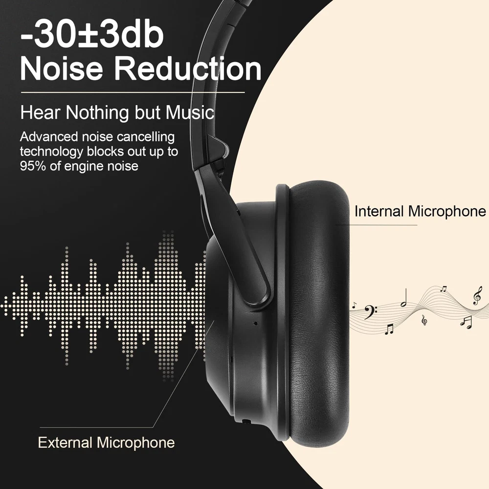 【Active Noise Cancelling Technology(ANC), Transparent Mode】: Industry-leading Active Noise Cancelling Headphones adopts the latest noise reduction technology, a combination of active noise reduction and passive noise reduction, which can detect and eliminate a wider range of low and intermediate frequency noise, such as car and aircraft engines and Busy office. "Transparent Mode" This feature lets in ambient noise, so you can easily hear announcements on an airplane or subway, or listen to what's happening around you without removing the active noise cancelling headphones. 【Premium sound quality, HiFi Stereo】: HiFi Stereo and clear treble benefits from the 40 mm audio driver and advanced Bluetooth 5.3 chip, which deliver exceptionally clear sound you can enjoy gorgeous deep bass feast. Just lose yourself in the music. 【Ergonomic Design】The professional-grade protein ear-pads, 100° swiveling ear cups, lightweight (only 0.31 lb), self-adjustable and flexible headband delivers a fatigue-free listening experience. The headphones fold compactly for easy storage when traveling. 【Up to 60 hours of playtime, Fast charging】:Enjoy up to 35 hours of music in noise cancelling mode, or extend the playtime to 60 hours in standard mode. A quick 5-minute charge gives you 4 hours of listening. You can charge it through the Type-C port, or use a 3.5mm audio cable for a wired connection. 【ANC headset , After Sale Protection】: Package includes ANC Noise Cancellation Bluetooth headphones,3.5mm backup audio cable, USB charging cable, User Manual and Travel protective storage bag. RORSOU dedicated to providing high quality products with excellent after-sale service. 180-days Hassle Free limited Protection and quick response customer Service. If you have any question, contact us and we'll get back to you within 12 hrs.