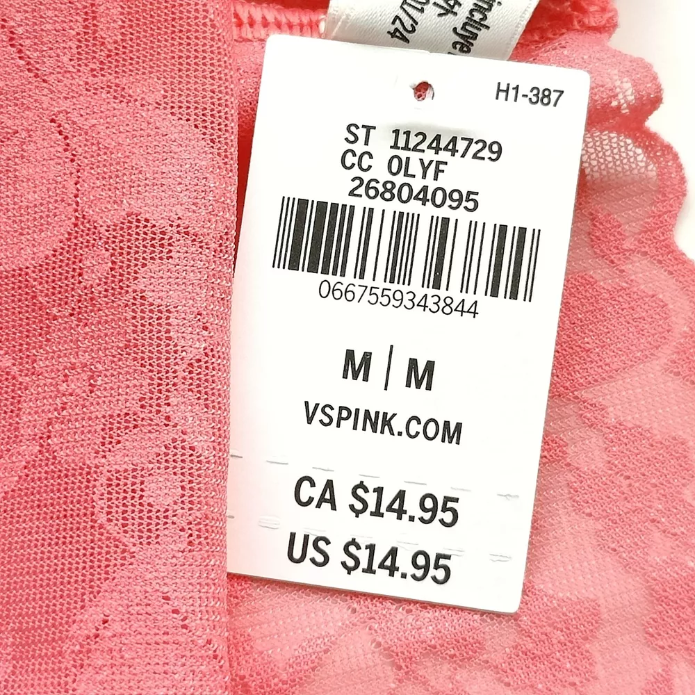 All photos are taken by Goob's Closet & Boutique and may not be reused without permission. Goob's Closet & Boutique lists on multiple platforms. If you choose to wait or "Watch", the listing may sell out on another platform, and will then no longer be available for purchase on eBay without notice to you. This thong panty is designed with minimal back coverage, making it a great choice for a smooth silhouette under clothes. The mid-rise fit offers just the right amount of coverage while keeping you comfortable. The sheer stretch butterfly floral lace is not only beautiful but feels lovely against the skin, and the crochet butterfly detail at the center front adds a touch of whimsy that you’ll adore. The wide waistband ensures that everything stays in place comfortably, and the 100% cotton gusset guarantees breathability where you need it most. Plus, it’s easy to care for with a simple machine wash. Details Thong Style Minimal Back Coverage Mid Rise All-Over Sheer Stretch Butterfly Floral Lace Crochet Butterfly Detail at Center Front Wide Waistband 100% Cotton Gusset Style No. 11244729 Material Body: 60% Recycled Polyamide, 24% Polyamide, 16% Elastane Waist: 64% Recycled Polyamide, 22% Elastane, 24% Polyamide Gusset: 100% Cotton Care Machine Wash Measurements PINK Victoria's Secret Size Small (S) will fit US Size 4-6, Waist 26-27 inches, Hips 36.5-37.5 inches best. PINK Victoria's Secret Size Medium (M) will fit US Size 8-10, Waist 28-29 inches, Hips 38.5-39.5 inches best. PINK Victoria's Secret Size Large (L) will fit US Size 12-14, Waist 30.5-32 inches, Hips 41-42.5 inches best. PINK Victoria's Secret Size Extra Large (XL) will fit US Size 16-18, Waist 34-36 inches, Hips 44.5-46.5 inches best.