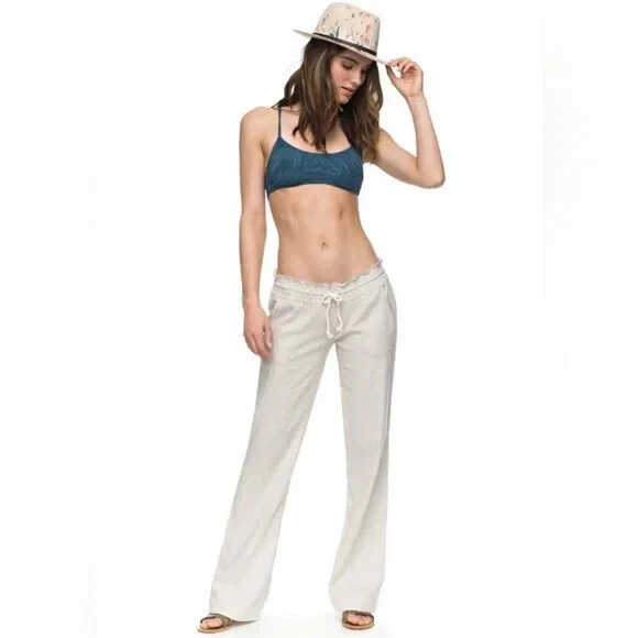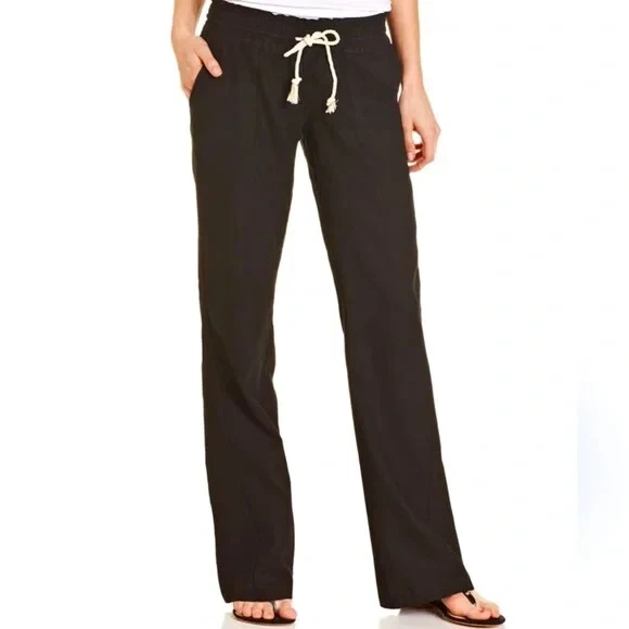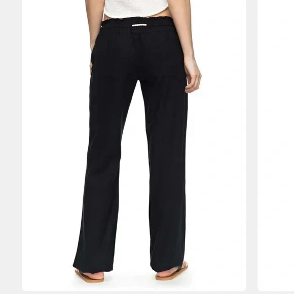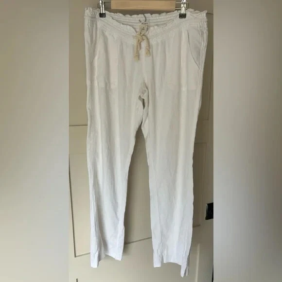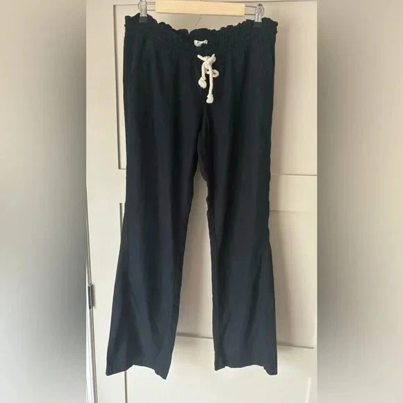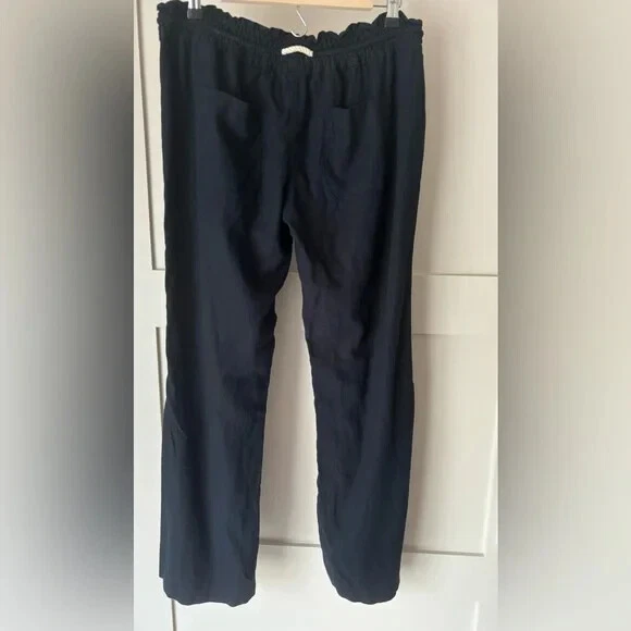 2 pairs White & Black , EUC from my friends closet barely worn Flared leg Cotton linen Garment silicone softener wash Elasticated waistband Heart embroidery on backside right pocket 55% Flax Linen, 45% Viscose